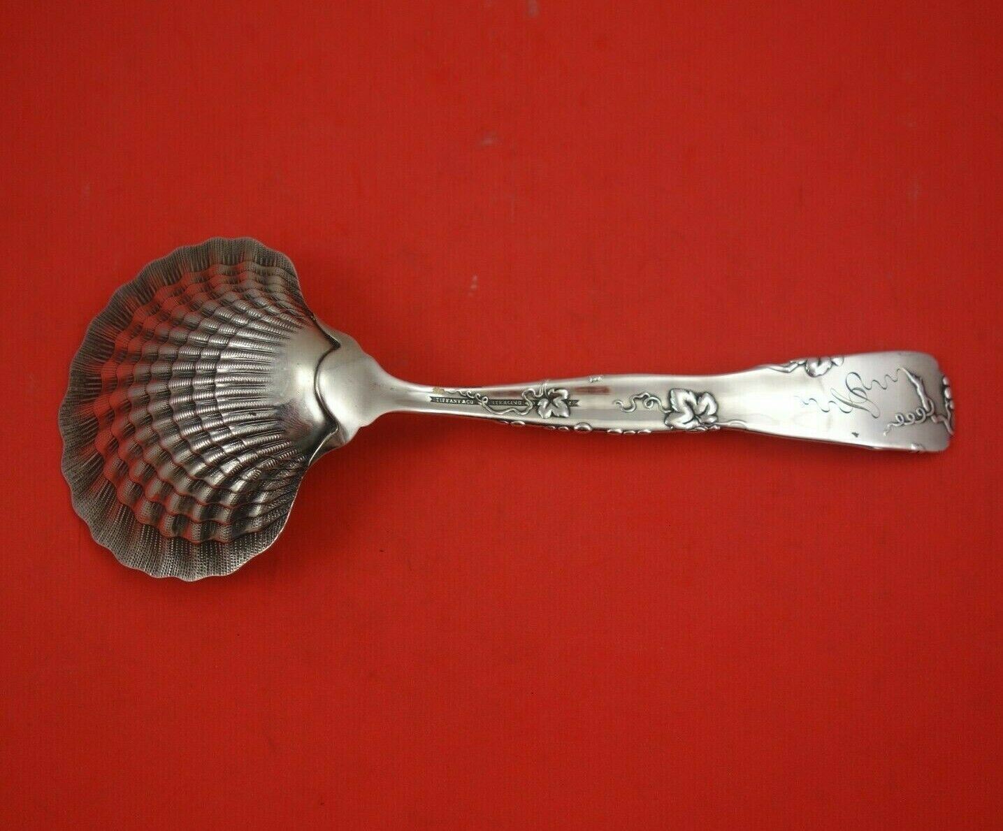 Sterling silver Berry Spoon Clam Shell with Grapes Motif 9" in the multi-motif pattern Vine by Tiffany and Co. It is not monogrammed and is in excellent condition.