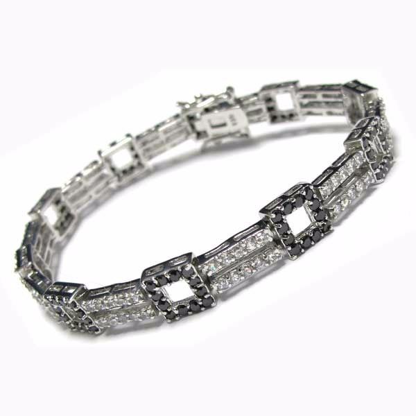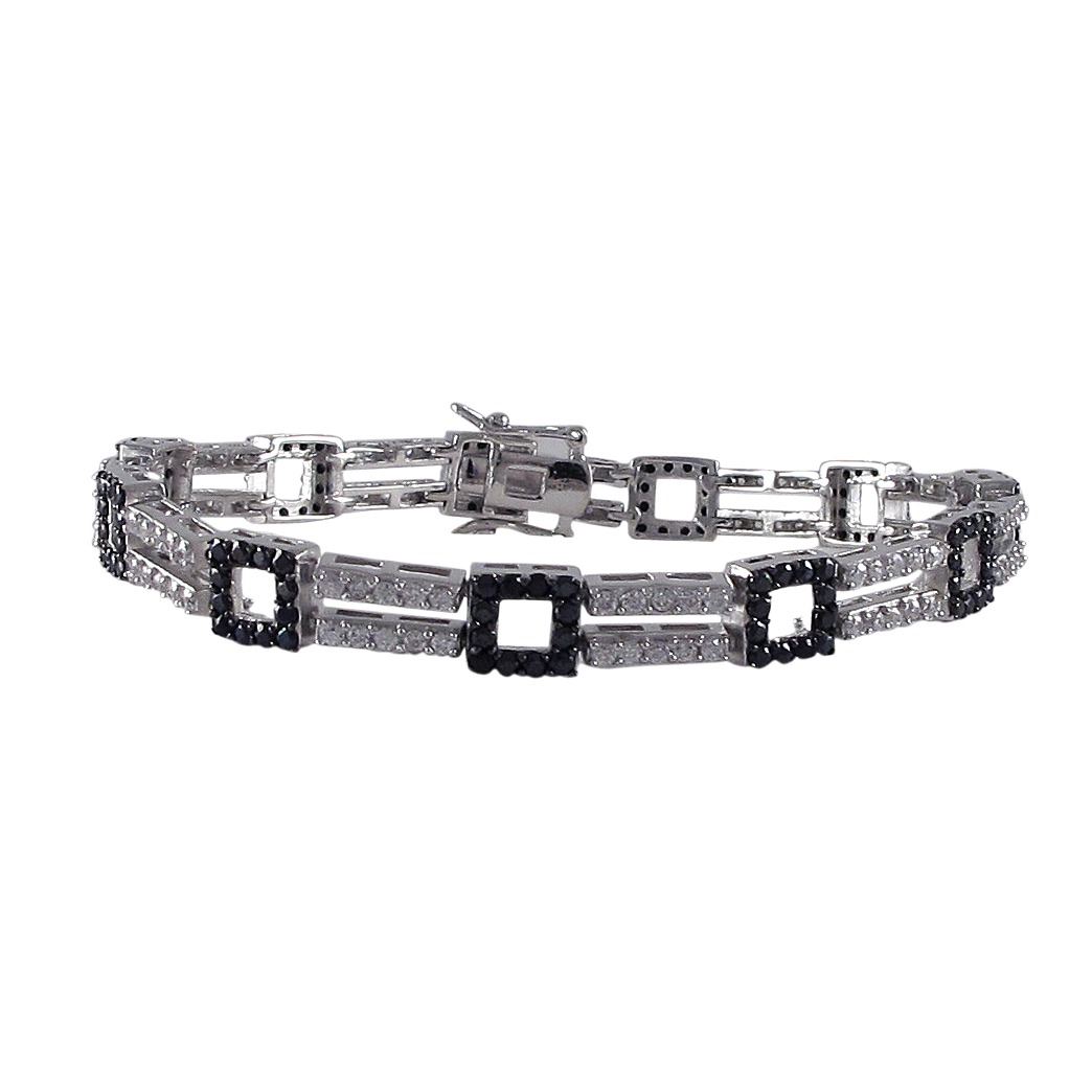 Sterling Silver Black And White CZ Bracelet -Two Row With Squares