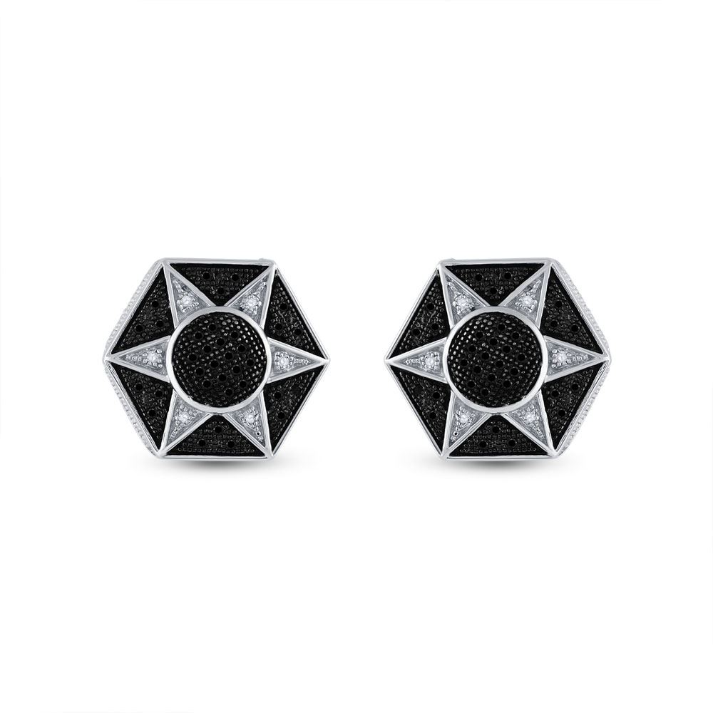Sterling Silver Black Color Enhanced Diamond Hexagon Star Cluster Earrings 1/5 Cttw Sterling Silver