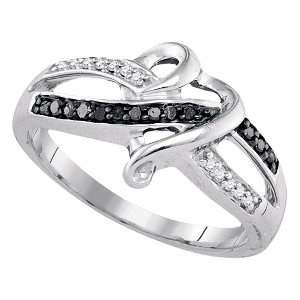 Sterling Silver Black Color Enhanced Round Pave-set Diamond Womens Band Ring 1/10 Cttw