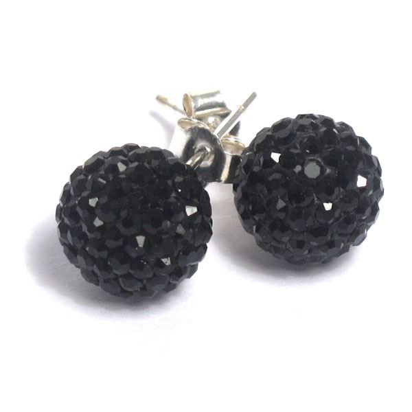 Sterling Silver Black Crystal 12Mm Post Earrings