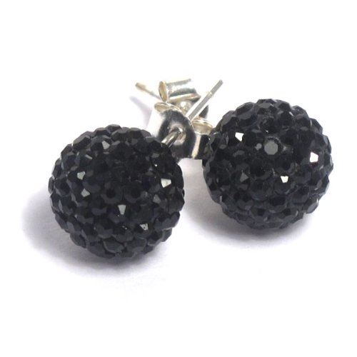Sterling Silver Black Crystal 8Mm Post Earrings