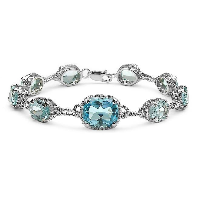 Sterling Silver Blue Topaz Rope Design Link Bracelet Item#: 12682069