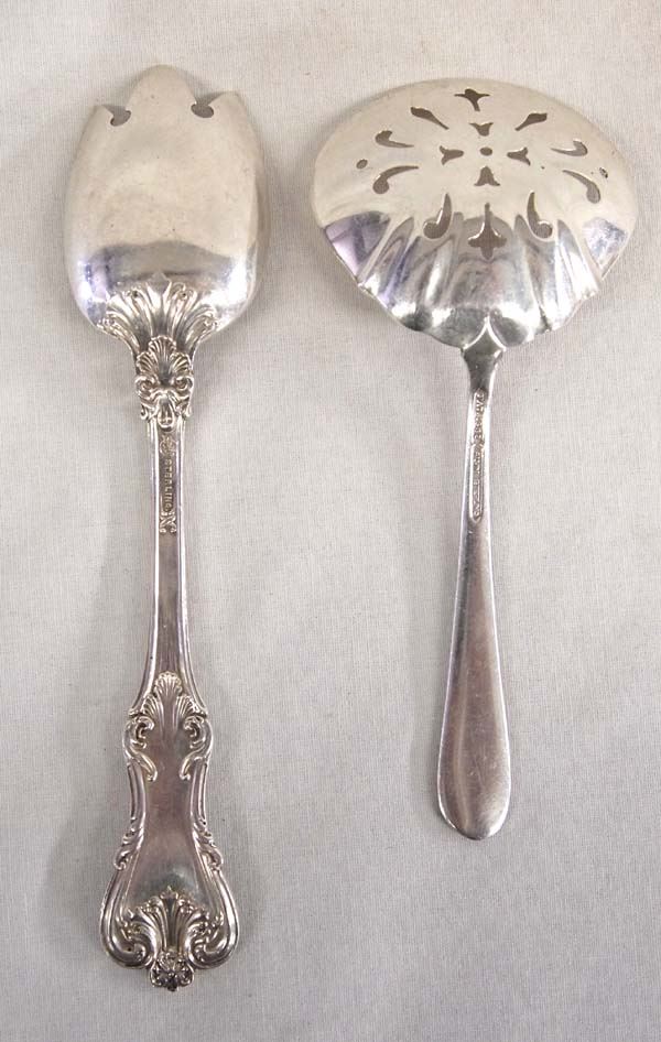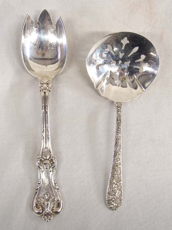 Sterling Silver Bon Bon Spoon & Fork, Bon Bon Spoon has beautiful pattern Alvin Bridal Bouquet and measures 4.75'' stamped Pat. 1932 Alvin Sterling, English Silver Marked Ice Cream Spoon measures 5.5'', 60.05g in total wt.