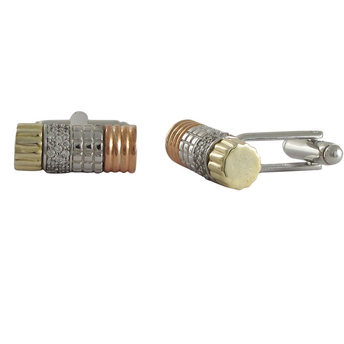 Sterling Silver (Bottom Is Brass) Tri Color CZ Cufflink
