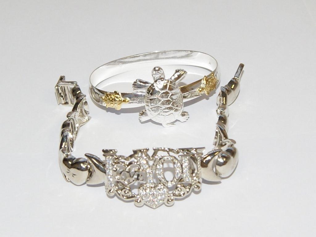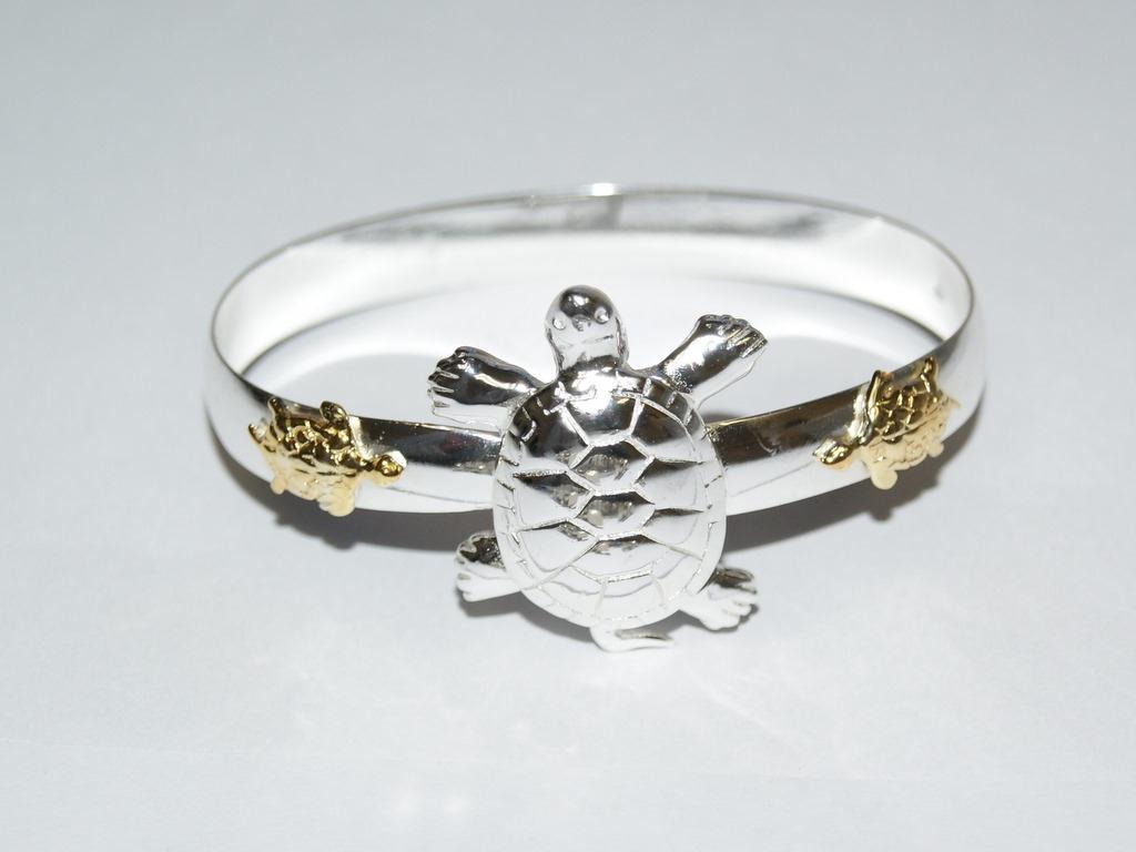 2 Times your Bid Sterling Turtle Bangle 2 Tone Bracelet Sterling Silver "I Love You" Bracelet