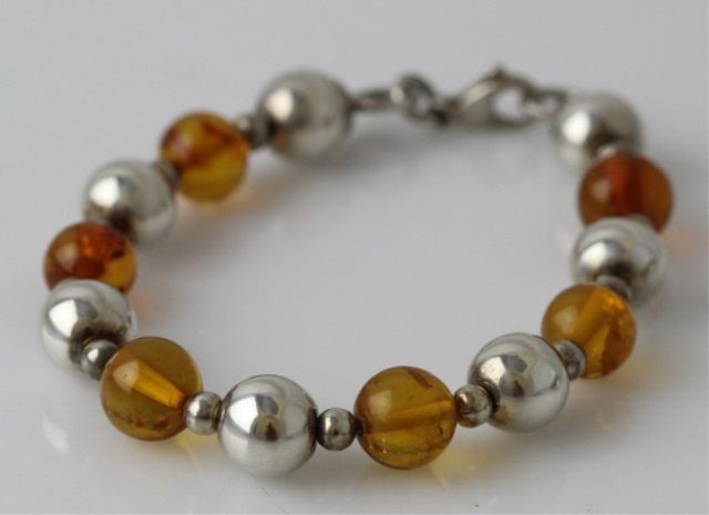 Sterling silver beaded bracelet with a polished finish.