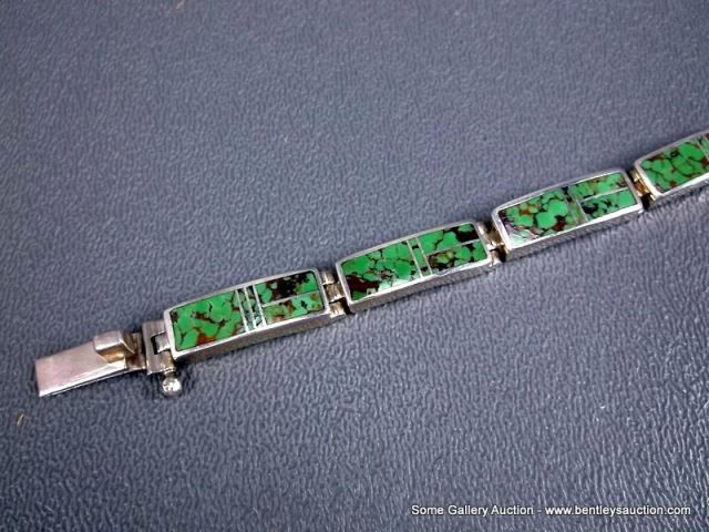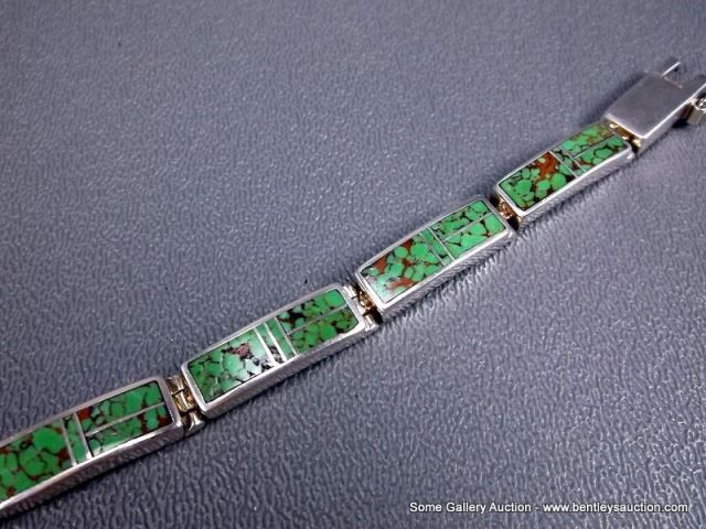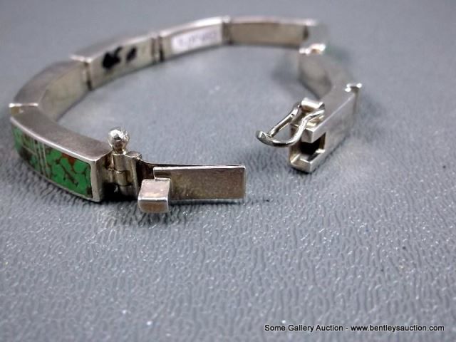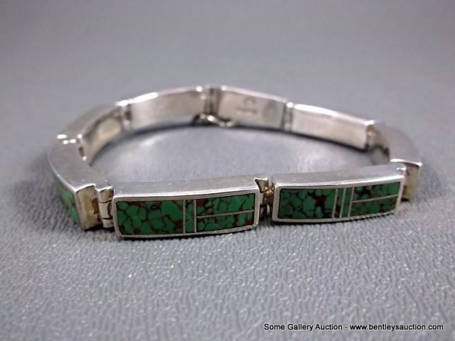 Sterling Silver Bracelet w/ Inlaid Turquoise- Marked C Weight: 29.5 Grams Retail: $699.00