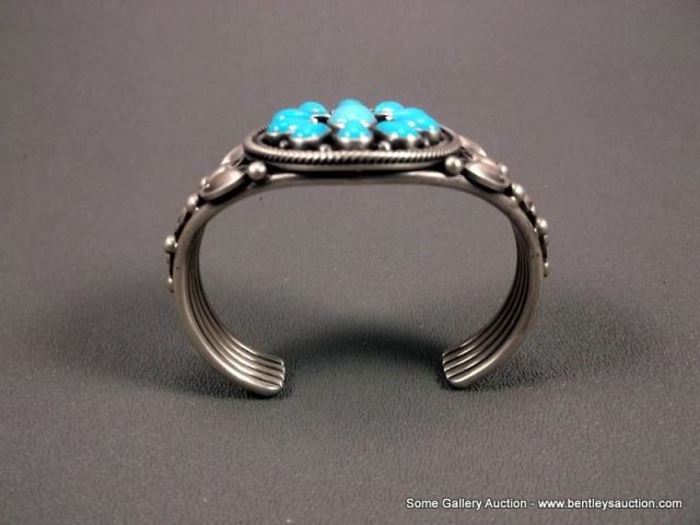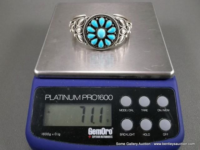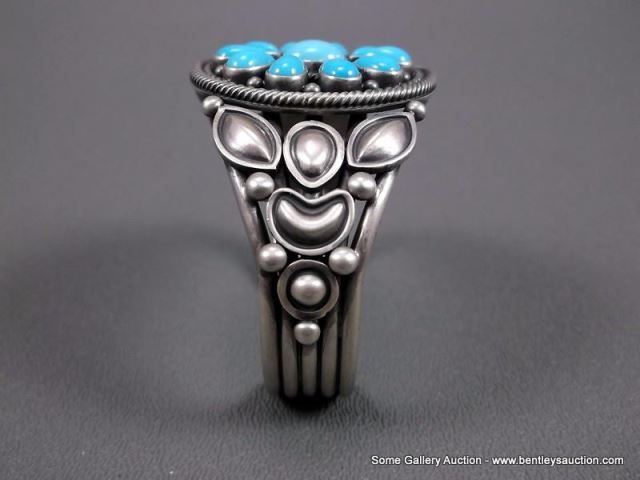 Sterling Silver Bracelet w/ Turquoise Blossom Stones- Marked Ray Bennett Weight: 71.1 Grams Retail: