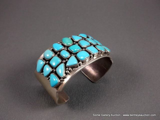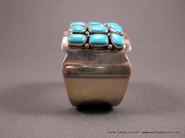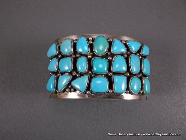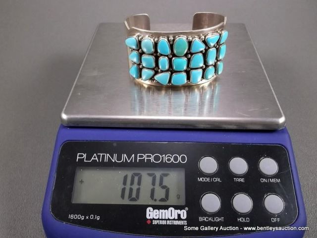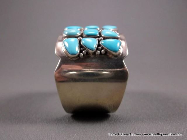 Sterling Silver Bracelet w/ Turquoise Stones - Marked R Weight: 107.5 Grams Retail: $775.00