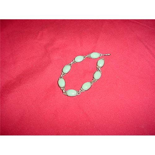 The bracelet is marked sterling on the back of one of the links. This marking is partially faded off; otherwise the bracelet is in excellent condition. There are eight (8) links with turquoise settings; the bracelet measures 6 1/2 inches long without the catch.