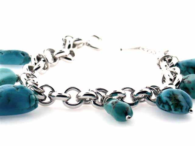 Sterling Silver Bracelet with Turquoise approximately 7.5 inches long and weighs 12.7 grams