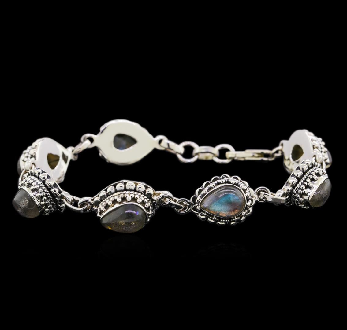 One of a kind high fashion sterling silver Bracelet weighing 29.4 grams. Containing: Labradorite. This sterling silver promises a lasting shine.