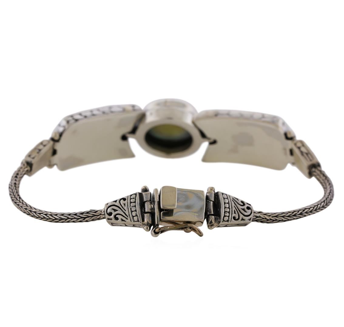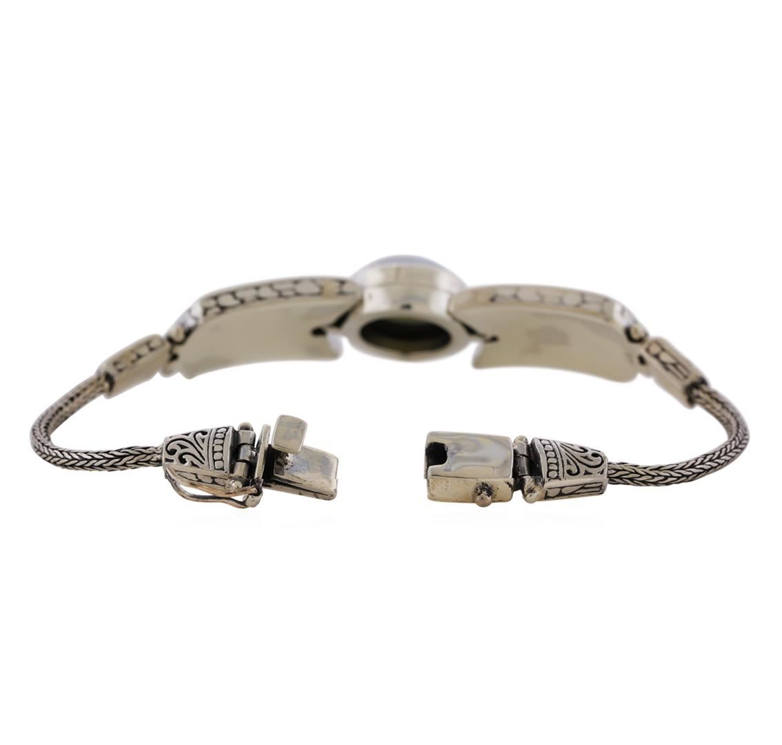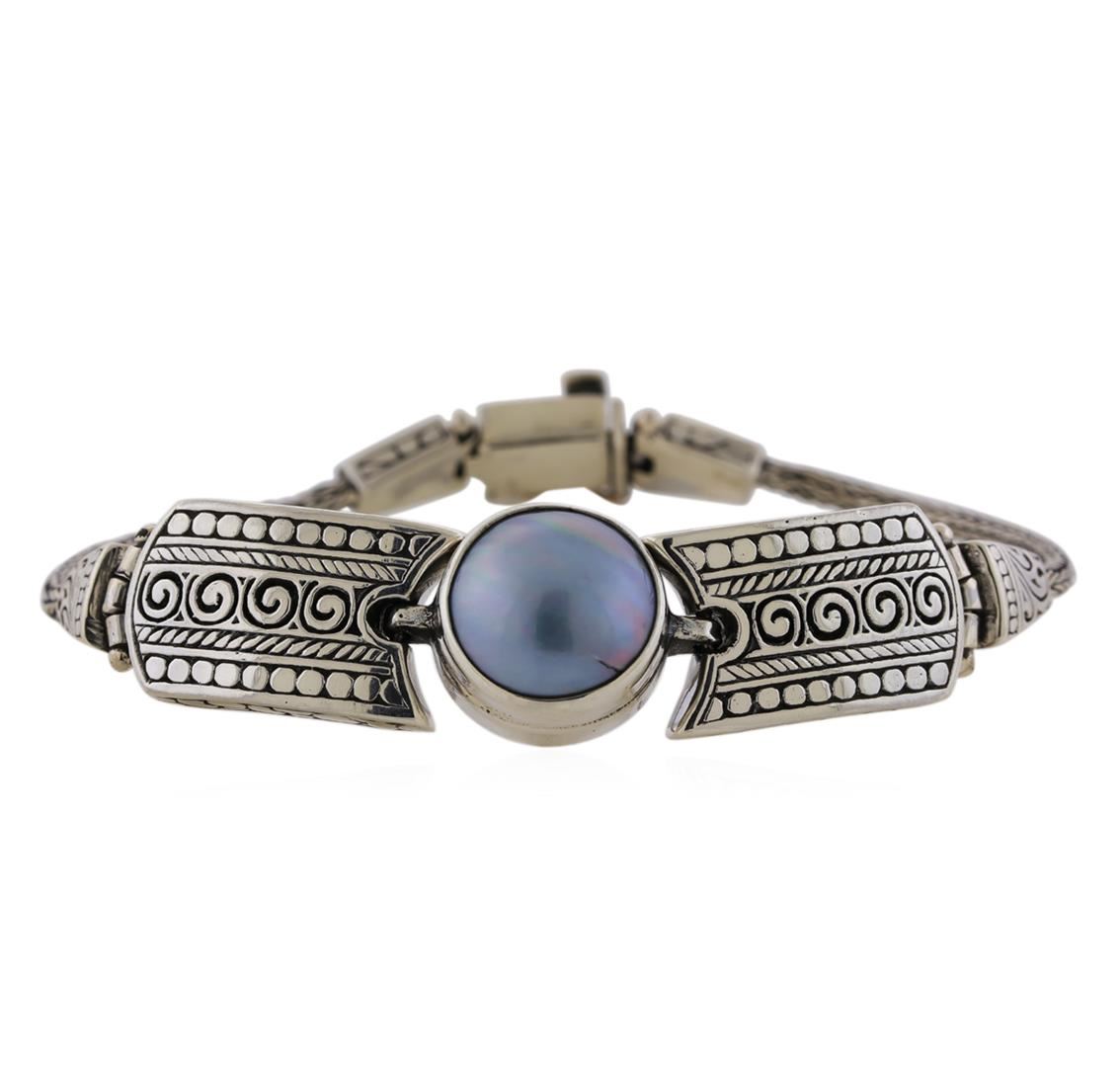 One of a kind high fashion sterling silver Bracelet weighing 29.6 grams. Containing: Mabe Pearl. This sterling silver promises a lasting shine.