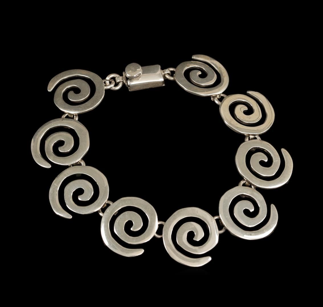 One of a kind high fashion sterling silver Bracelet weighing 27.5 grams. This sterling silver promises a lasting shine.