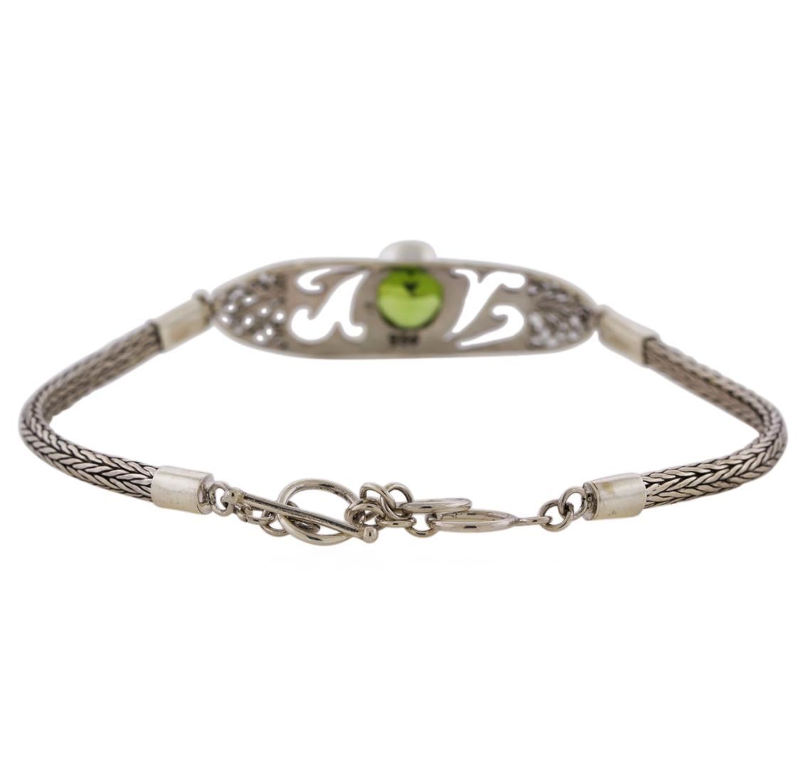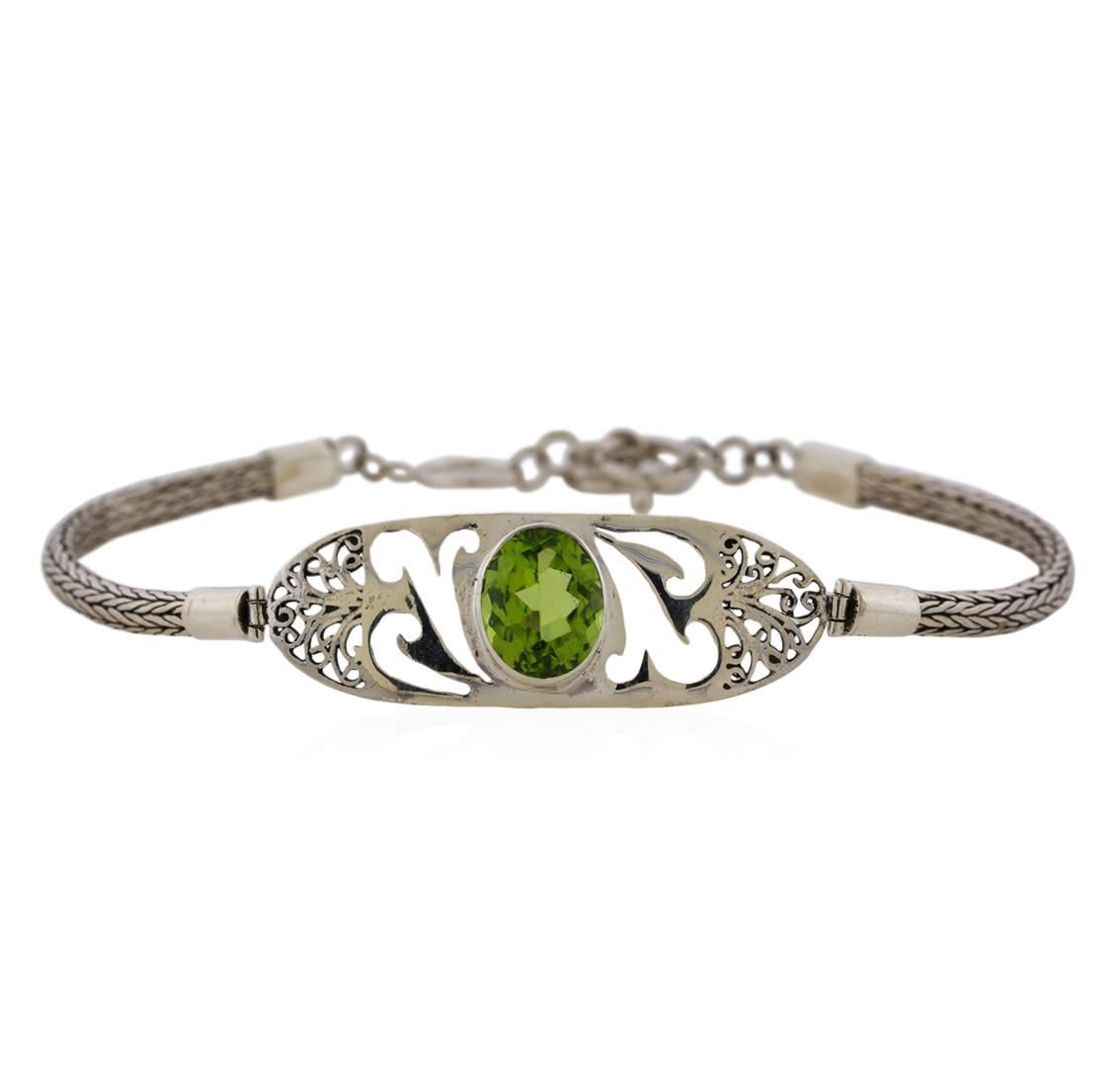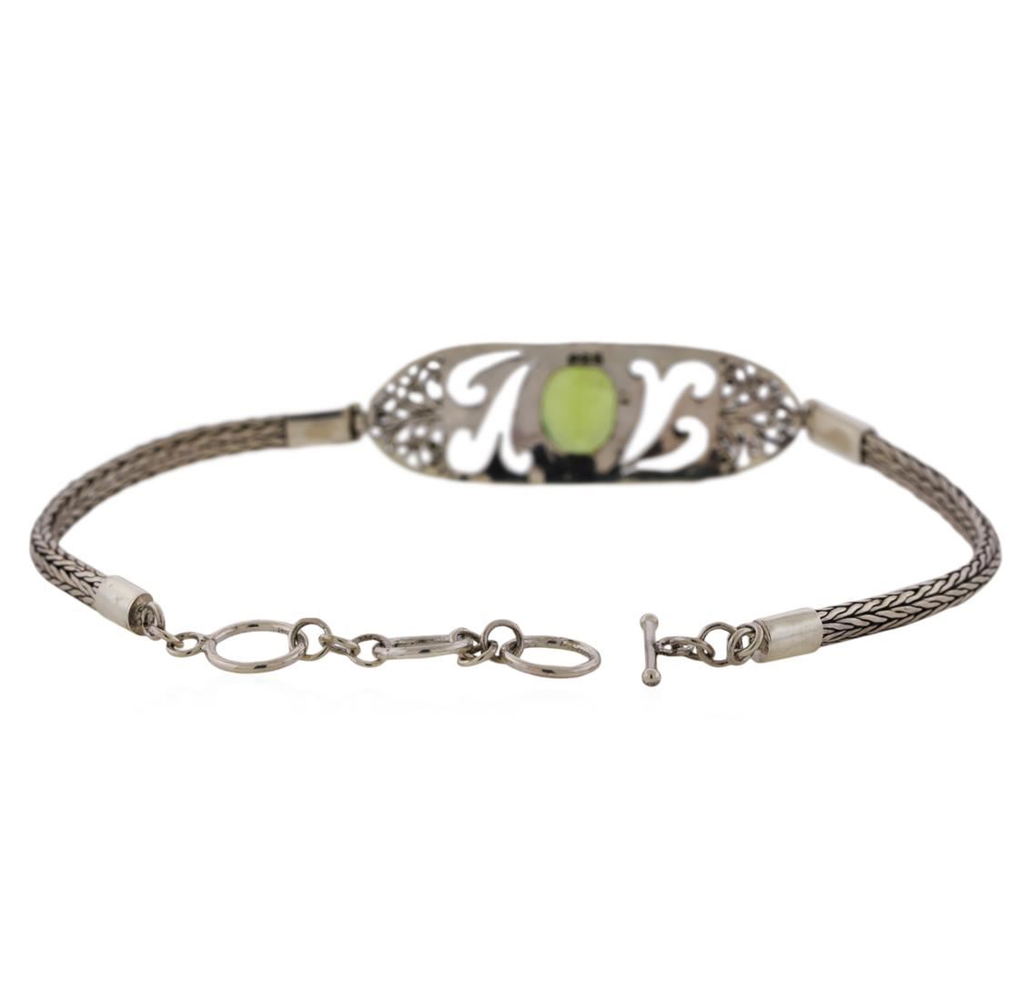 One of a kind high fashion sterling silver Bracelet weighing 7.7 grams. Containing: Peridot. This sterling silver promises a lasting shine.