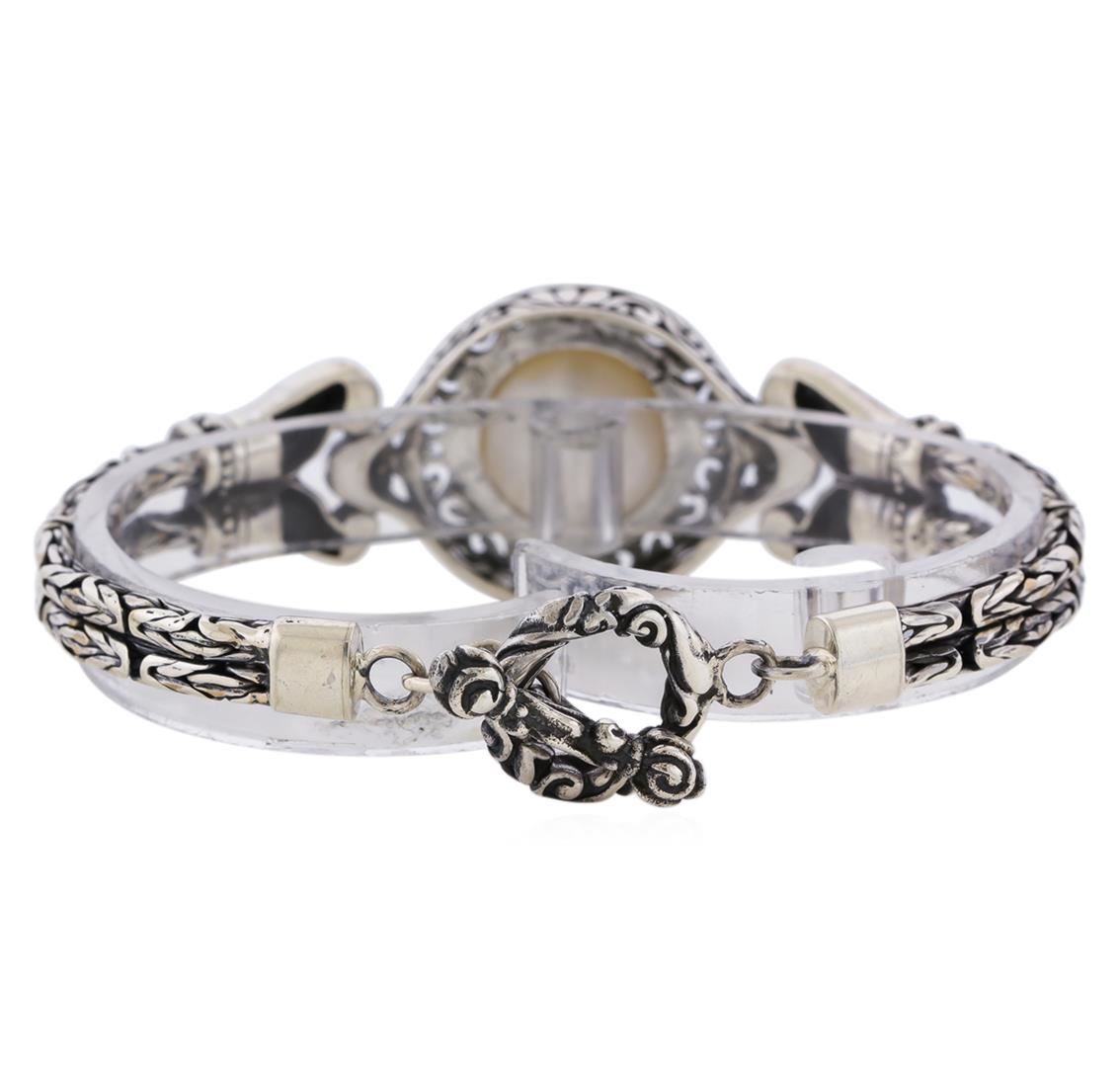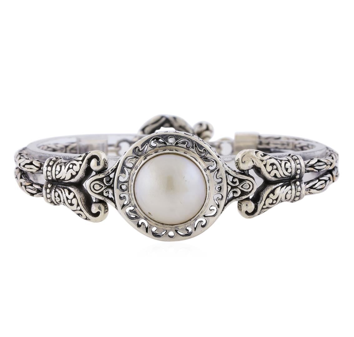 One of a kind high fashion sterling silver Bracelet weighing 26 grams. Containing: Mabe Pearl. This sterling silver promises a lasting shine.