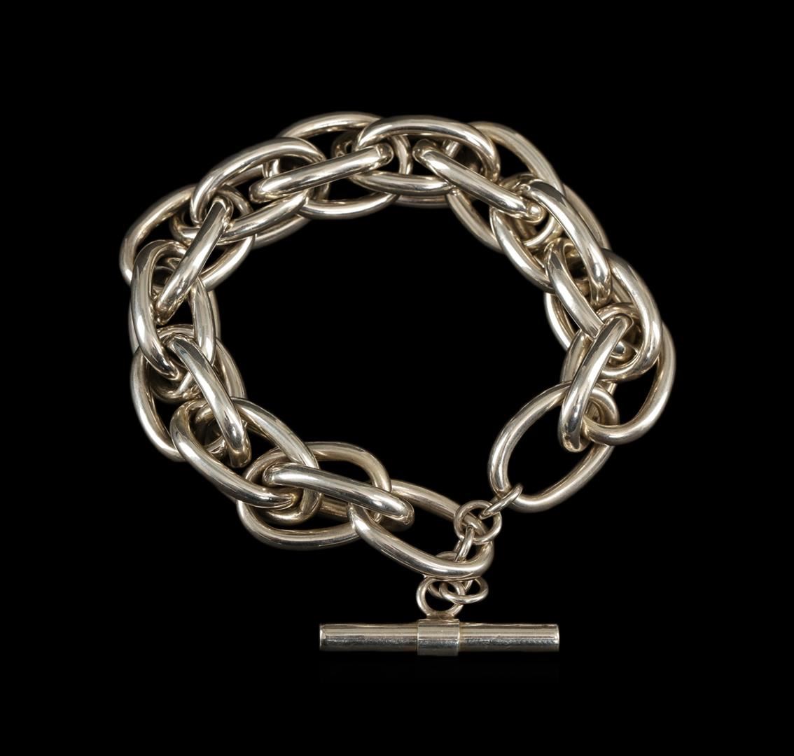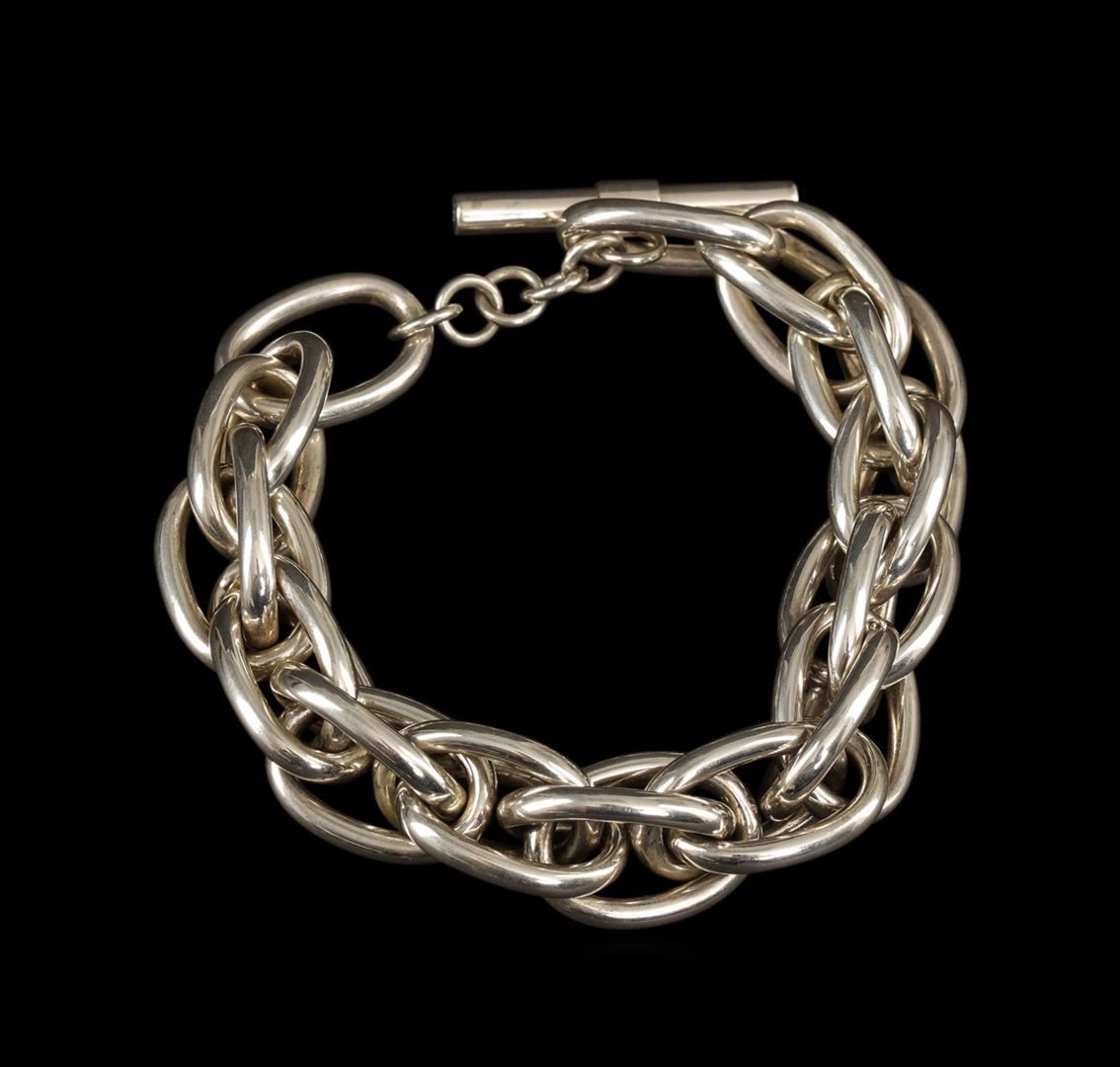 One of a kind high fashion sterling silver Bracelet weighing 30.5 grams. This sterling silver promises a lasting shine.