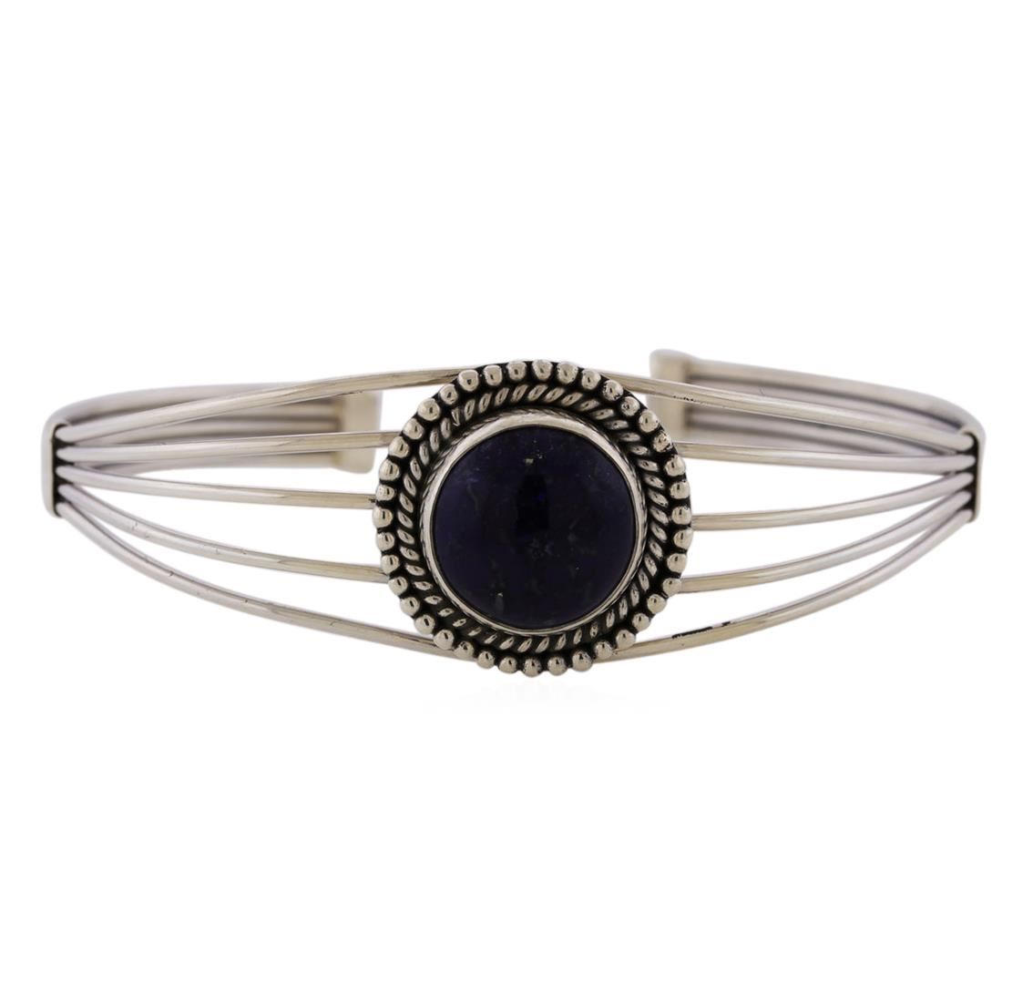 One of a kind high fashion sterling silver Bracelet weighing 20.9 grams. Containing: Lapis. This sterling silver promises a lasting shine.