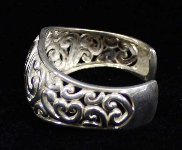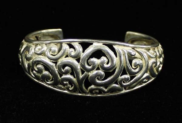 Sterling Silver Bracelet, beautiful design, inside measures 6.5'' which includes opening x 1''W, total wt. of 40.39, stamped .925