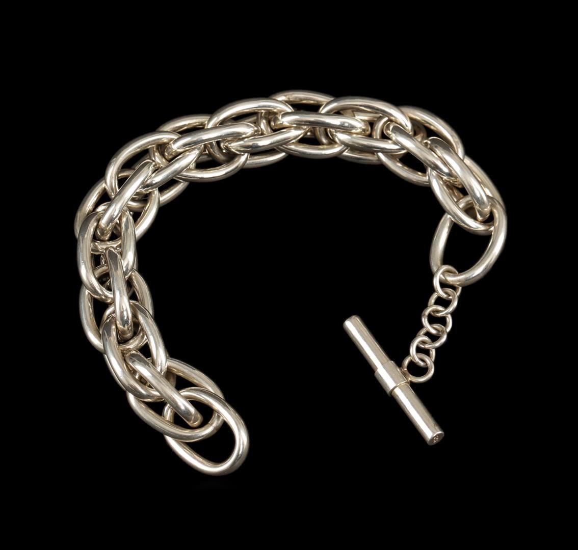 One of a kind high fashion sterling silver Bracelet weighing 30.5 grams. This sterling silver promises a lasting shine.