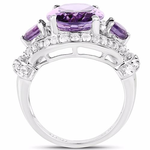 Brazil Amethyst Oval 14x10mm - 1Pc + African Amethyst Round 4.00mm - 2Pcs + White Topaz Round 1.60mm - 36Pcs