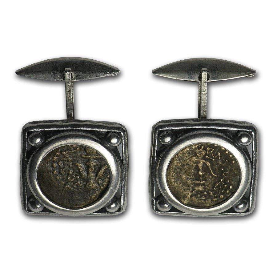 Sterling Silver & Bronze Antiques Widows Mite Coin Cuff Links