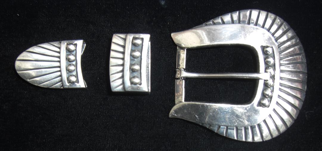 Sterling Silver Buckle Set. 1" three piece set by Pat Areias, Carmel, CA.