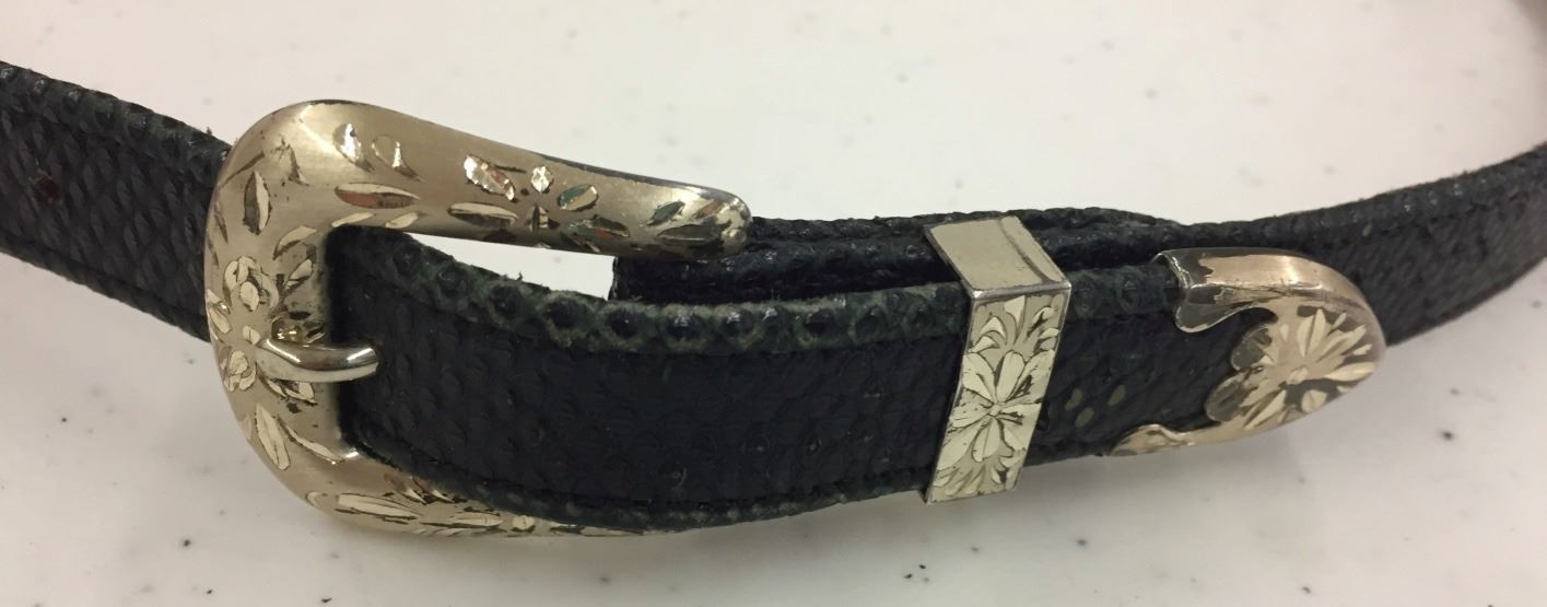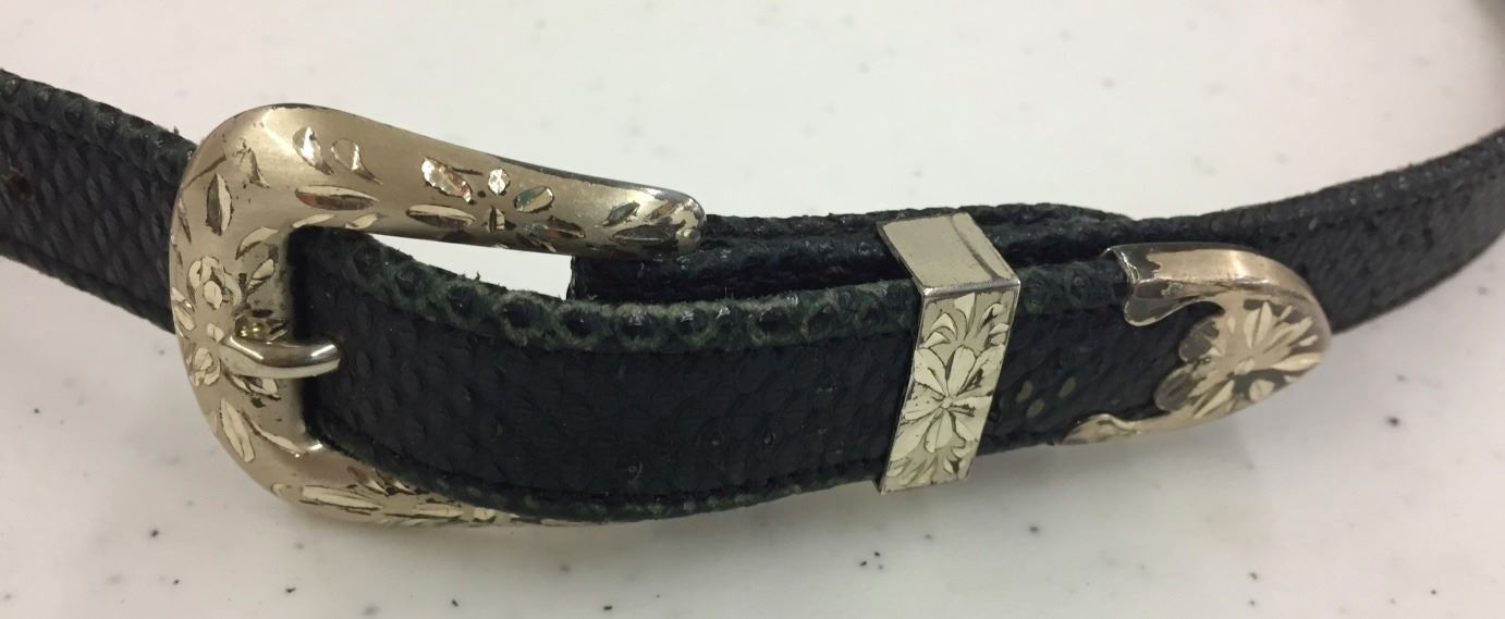 Maker: Marked Sunset Trails. Approx. Age: Fairly modern. Size: Belt is .75” wide and 33.5” long. Condition: Good. Additional Info: A nice quality leather belt, buckle is marked Sterling. Please look closely at the pictures - they are an important part of our description. Shipping: There will be a $5 handling / packaging fee for shipping this lot. The actual cost of postage will be added on top of that.