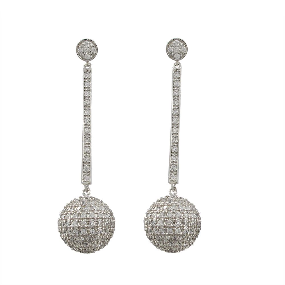 Sterling Silver CZ Ball On CZ Stick Post Earrings-57M Long