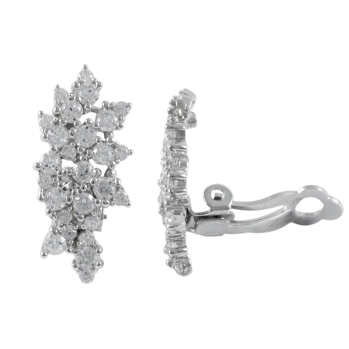 Sterling Silver CZ Cluster Clip On Earrings- 0.95"