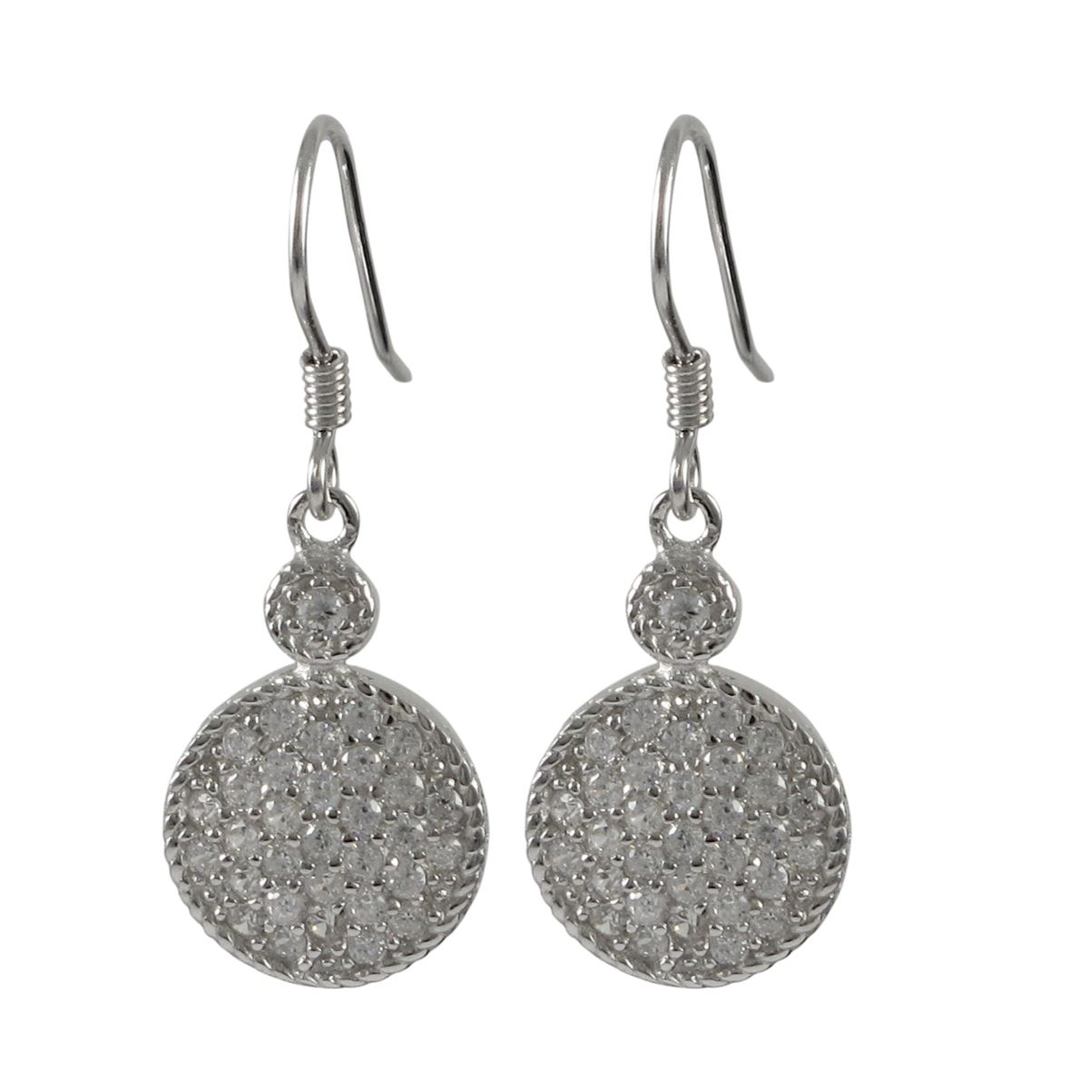 Sterling Silver CZ Fish Hook Earrings, 1.26"