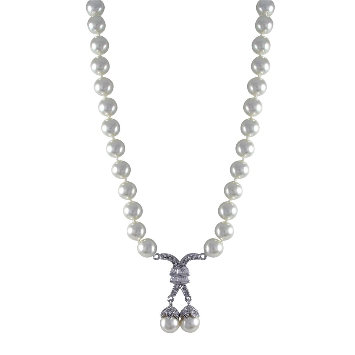 Sterling Silver CZ Pearl Necklace