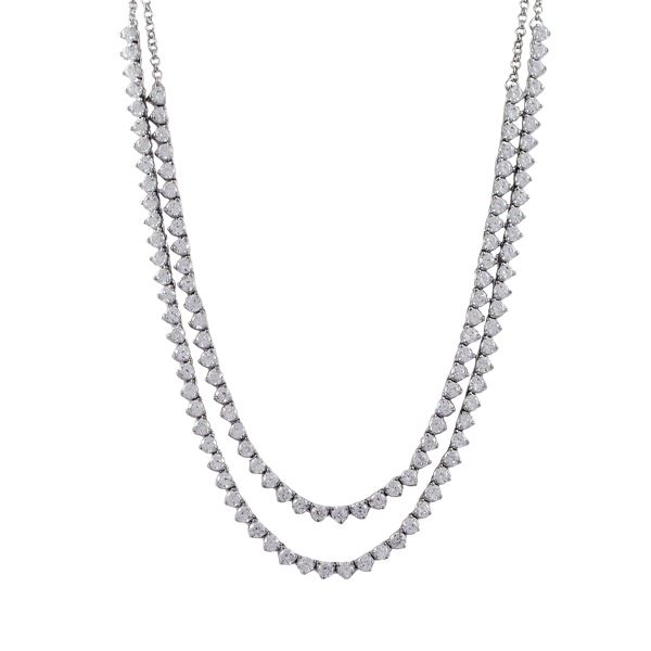 Sterling Silver CZ Two Row Necklace, 17" 2" Long.