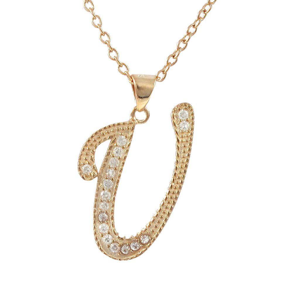 Sterling Silver CZ U Initial - Rose/White