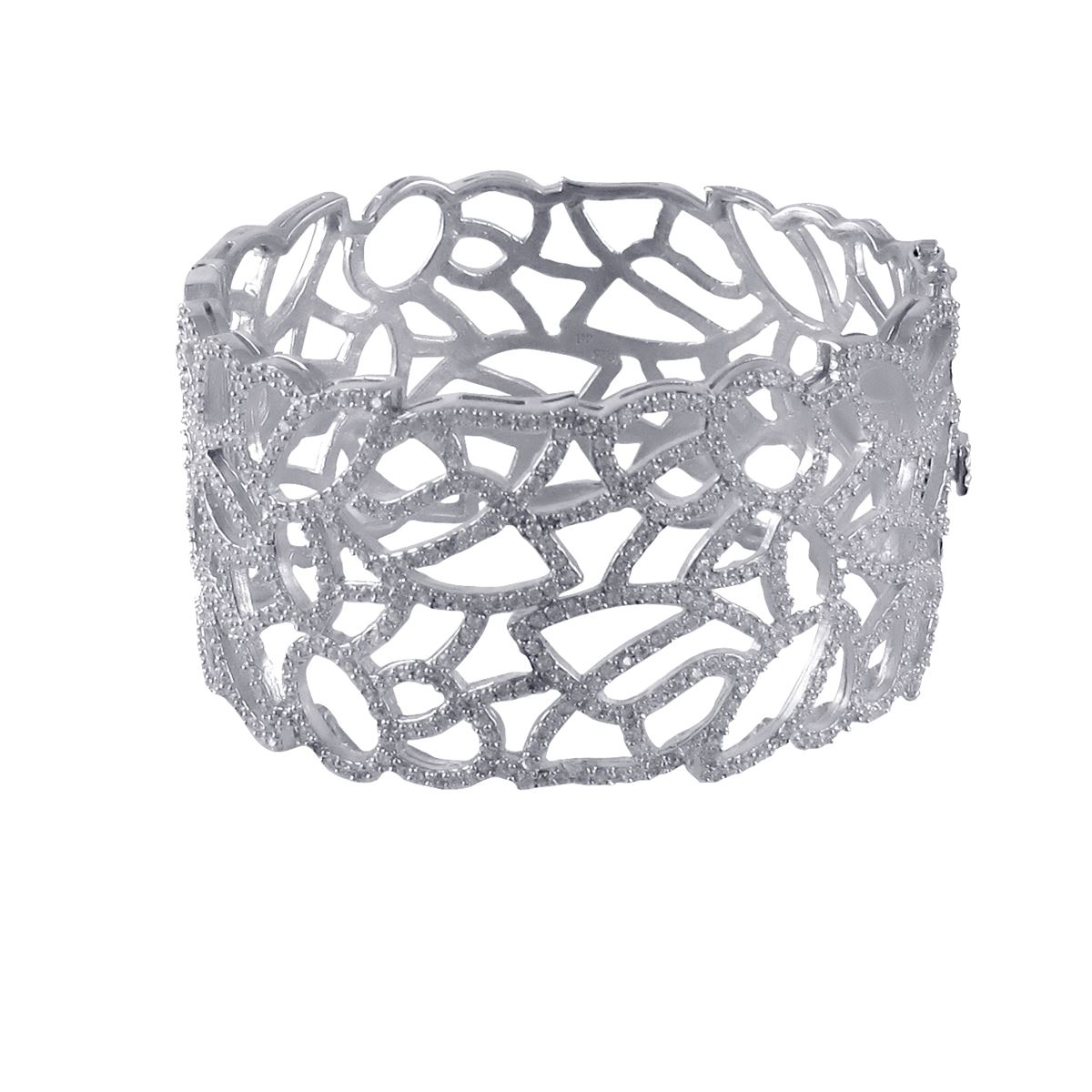 Sterling Silver CZ Wide (35Mm Wide) Cuff Bangle Leaf Filigree Design, 55Mm.