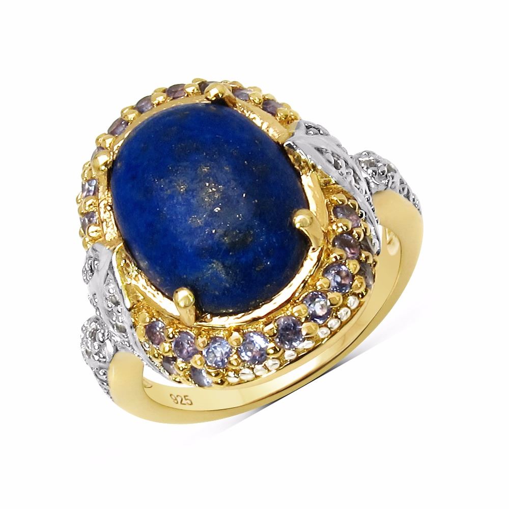 Lapis Cabochon Oval 14x10mm - 1Pc + Tanzanite ( A-A+ ) Round 1.80mm - 22Pcs + Tanzanite ( A-A+ ) Round 1.50mm - 4Pcs + White Topaz Round 1.00mm - 18Pcs + White Topaz Round 0.80mm - 10Pcs ( Center Stone Height : 3.50mm ) ( White Pan Rhodium )