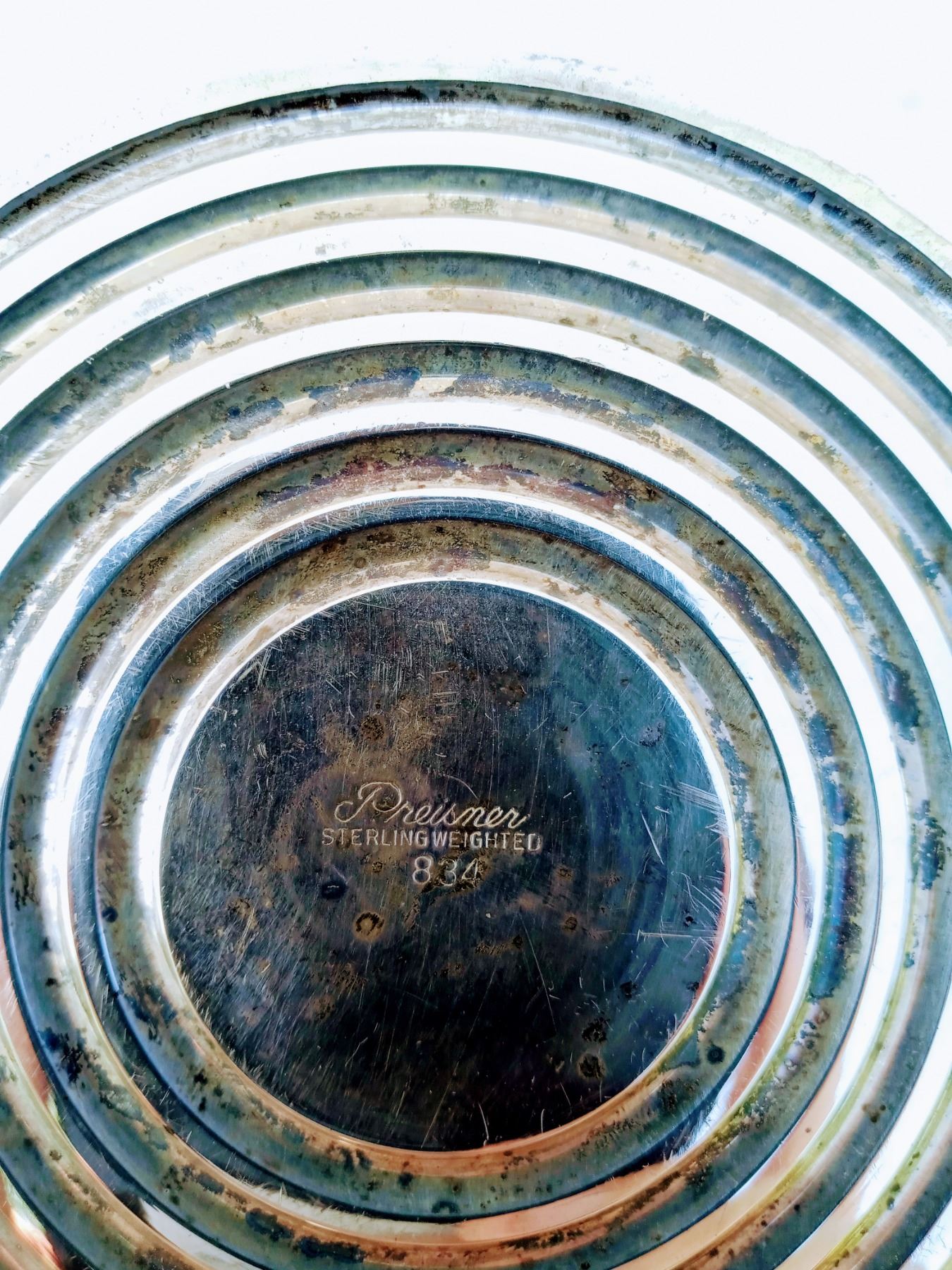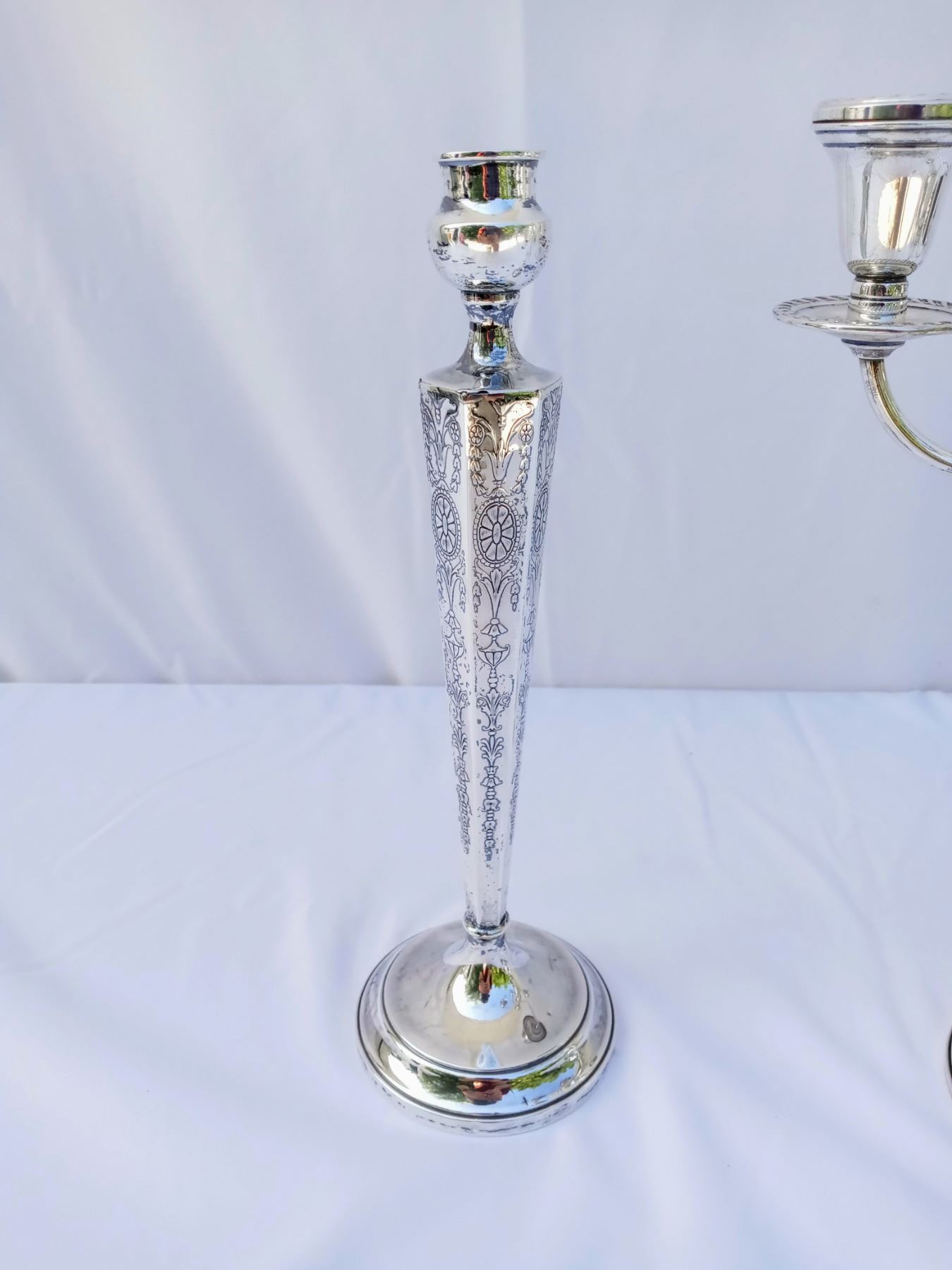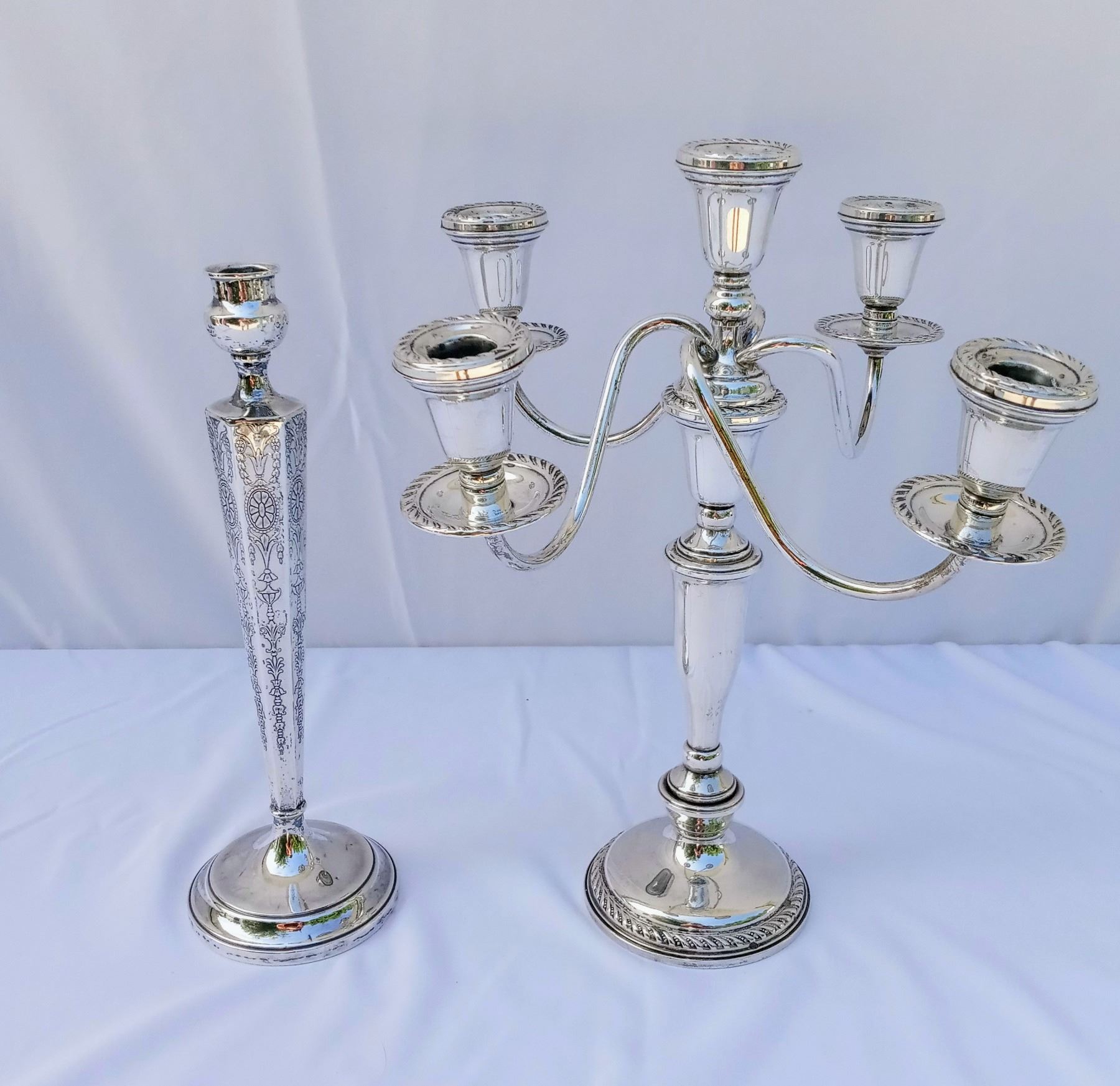 Preismer Sterling Silver Five Light Candelabra with Scrolling Four Arms and Weighted, Circular Pedestal Base and A Vintage Silver Weighted Candle Stick Holder