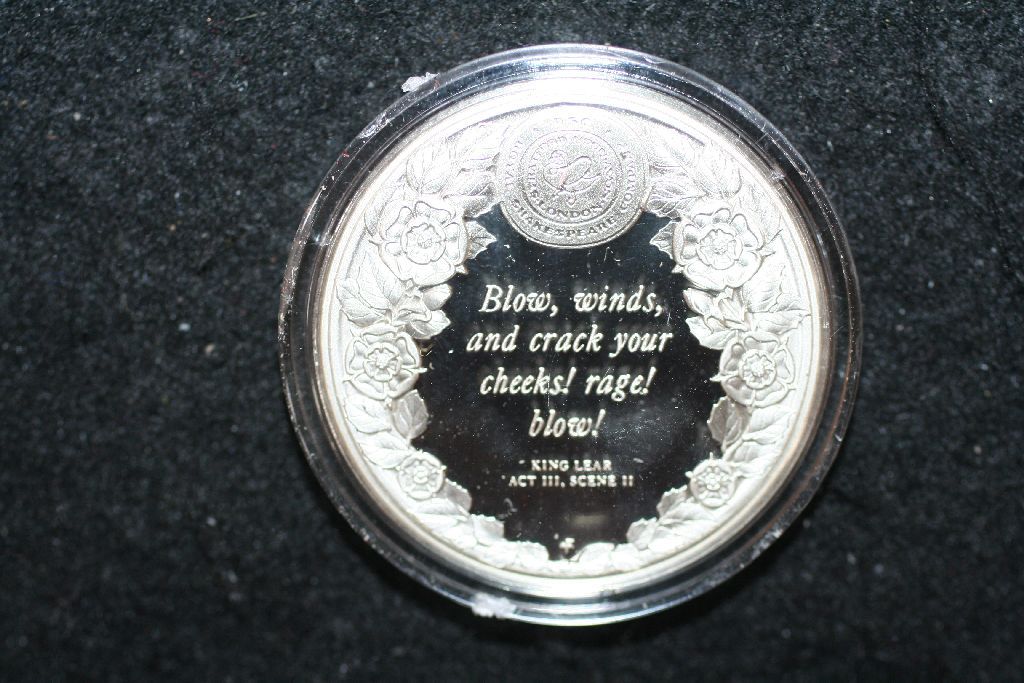 Sterling Silver Centennial Edition Round; Shakespeare Trajedy Medal-King Lear; "Blow, winds, and cra