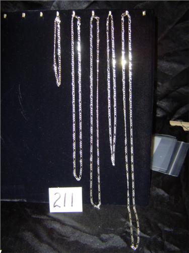 Sterling Silver Figaro Chain wit Lobster Clasps, 8", 18", 20", 24" and 30". Total weight 38.2 grams.