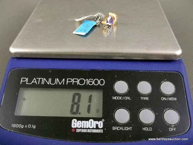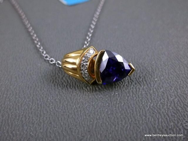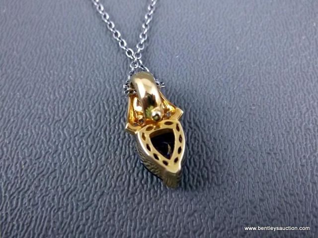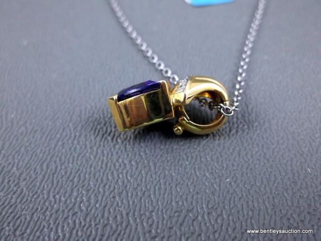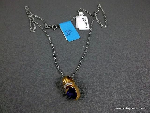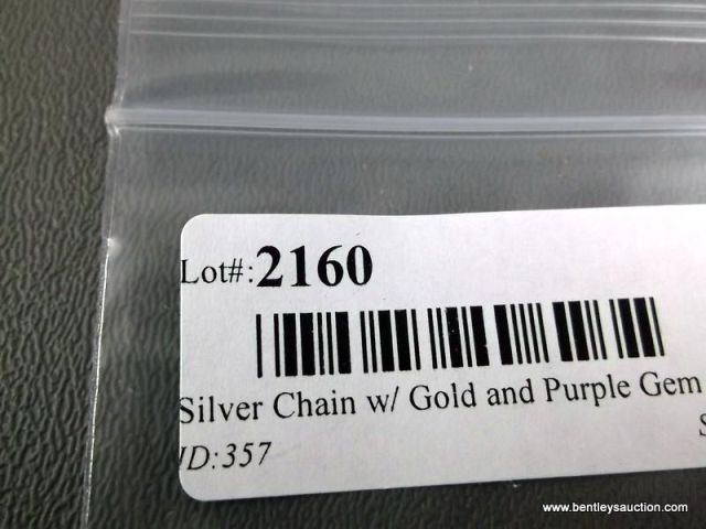 Sterling Silver Chain w/ 18 K Yellow Gold pendant w/Purple Gem and Diamonds-Marked CS Weight: 8.1 Gr