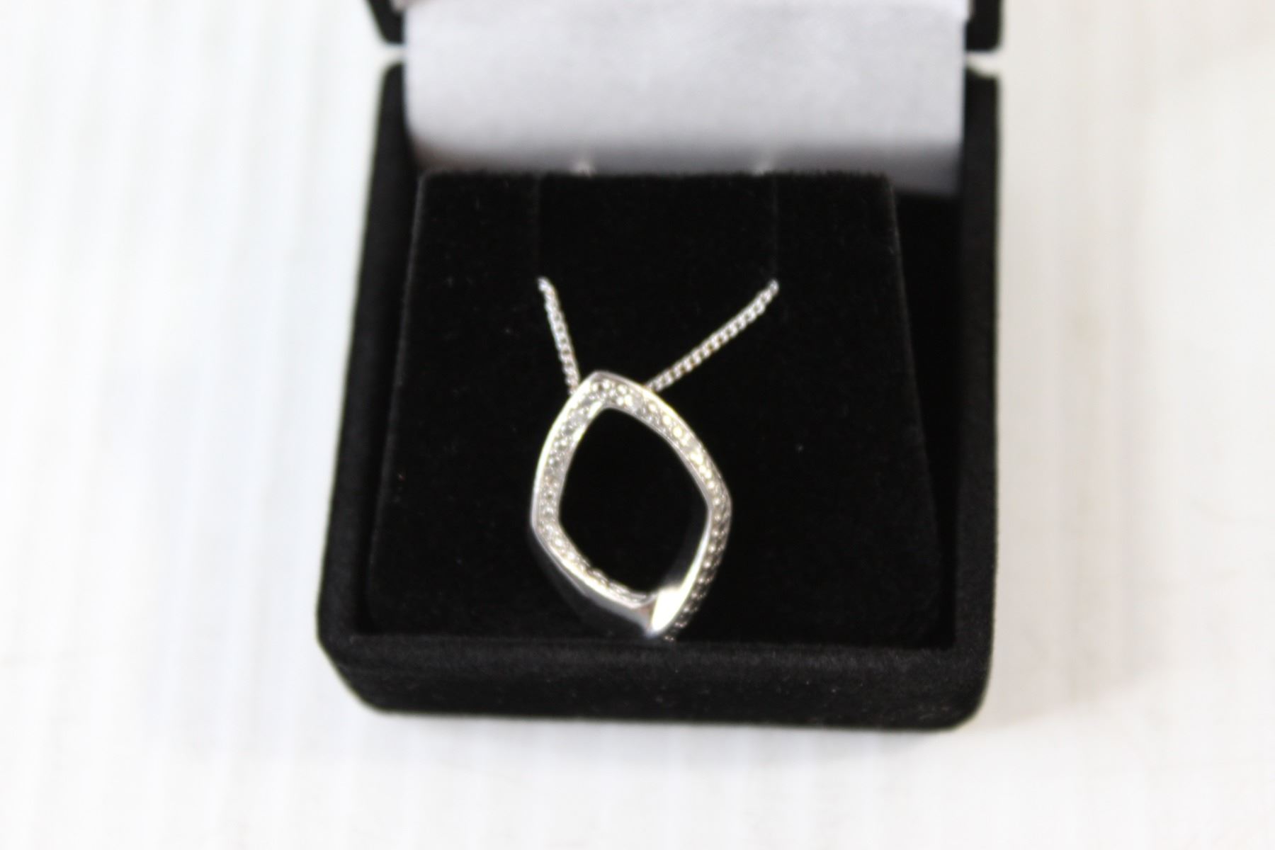 Sterling Silver Chain with Diamonds Set in Sterling Silver Pendant