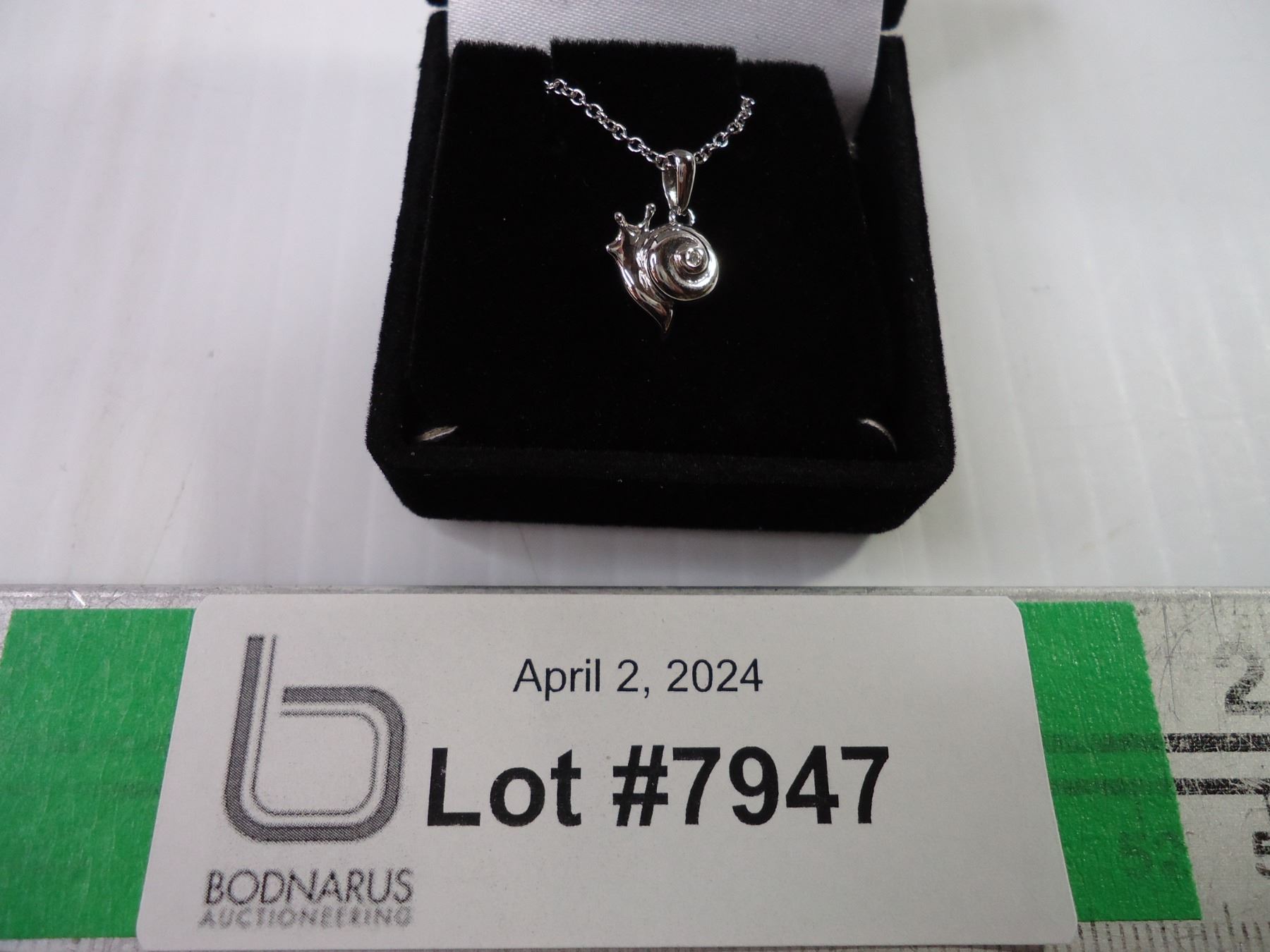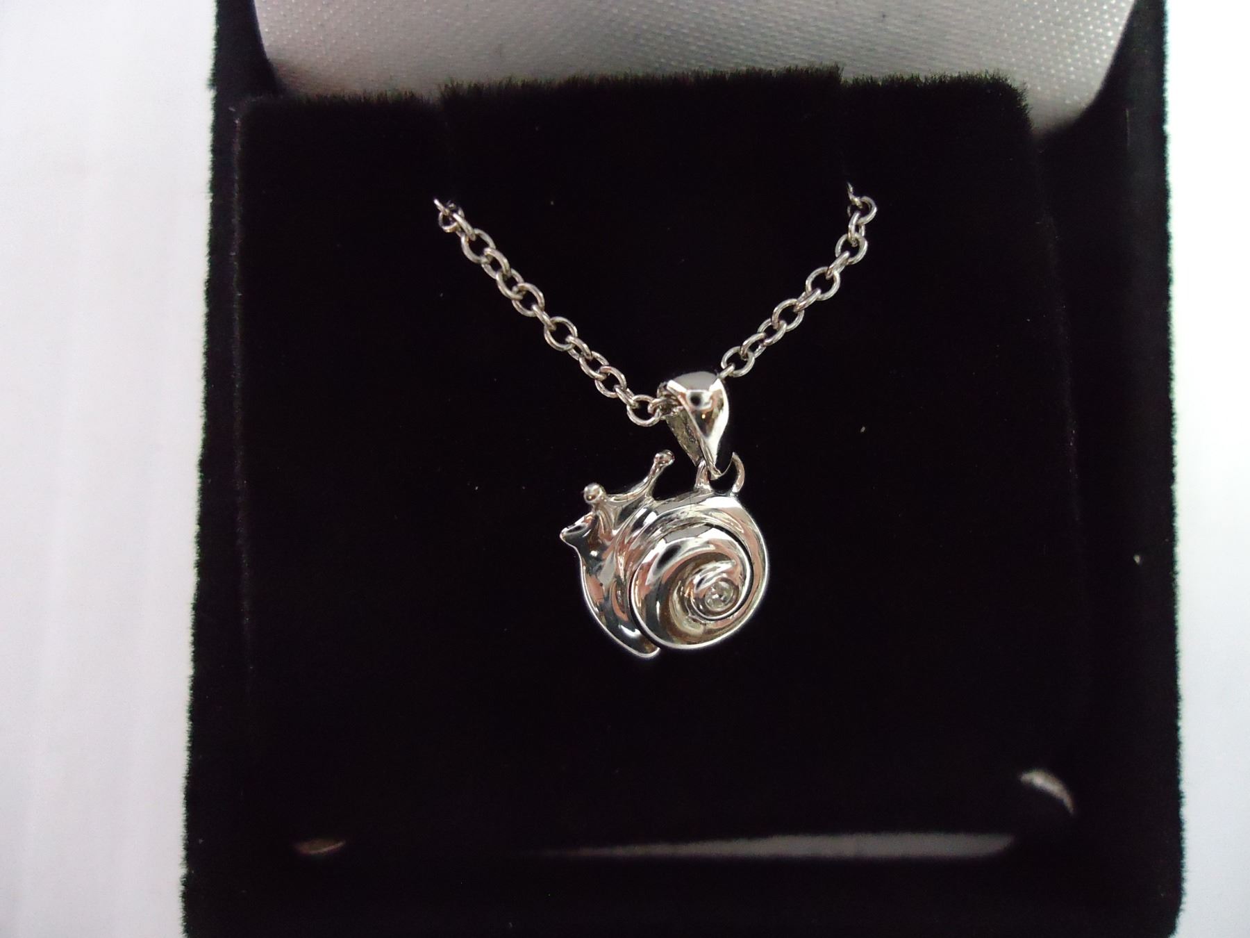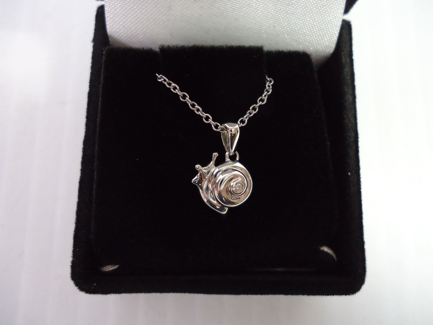 Sterling Silver Chain with a Diamond Chip set in a Snail Pendant