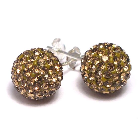 Sterling Silver Champagne Crystal 12Mm Post Earrings