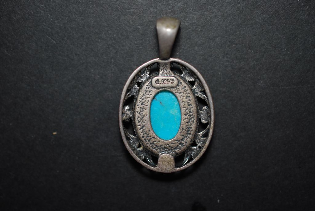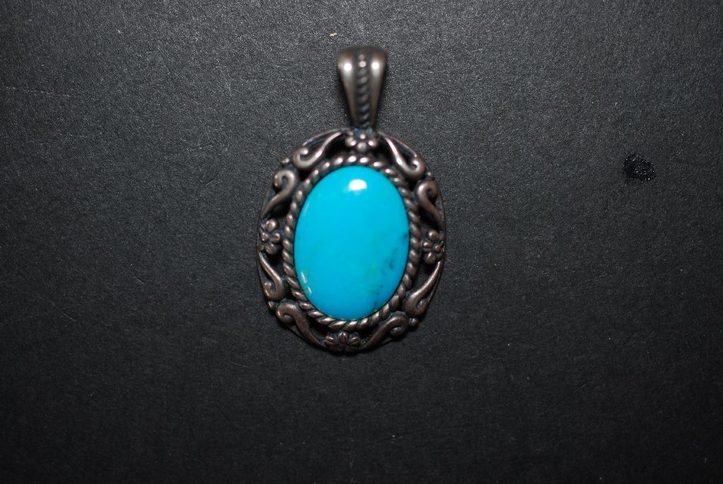 Sterling Silver Charm & Loop With Oval-Shaped Turquoise-Like Stone In Bezel; EST. $20-30