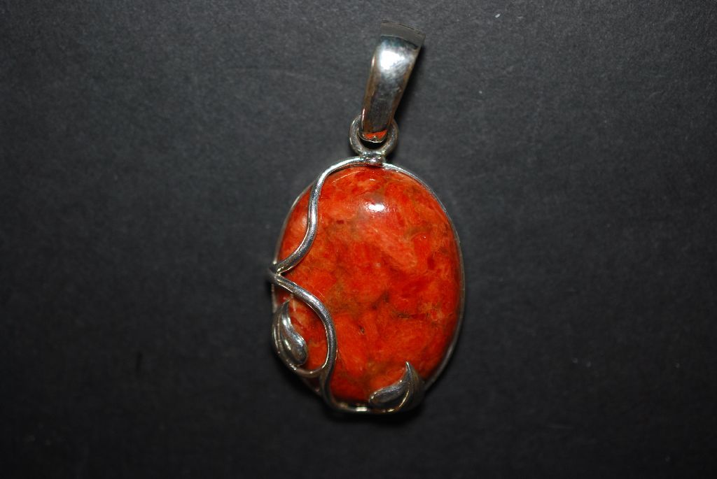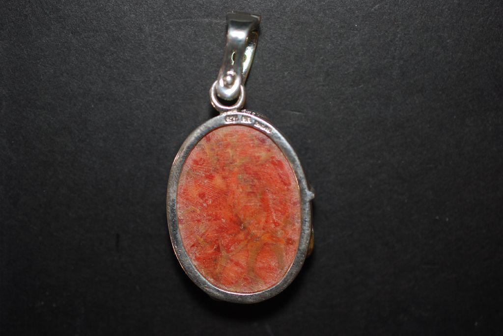 Sterling Silver Charm & Loop With Red Marbled Gemstone With Leaf Design On Bezel; .925 Silver; EST. $20-30