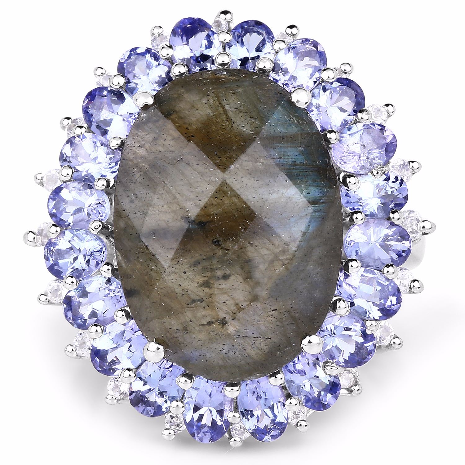 Sterling Silver Checkerboard Laboradorite and Tanzanite Ring