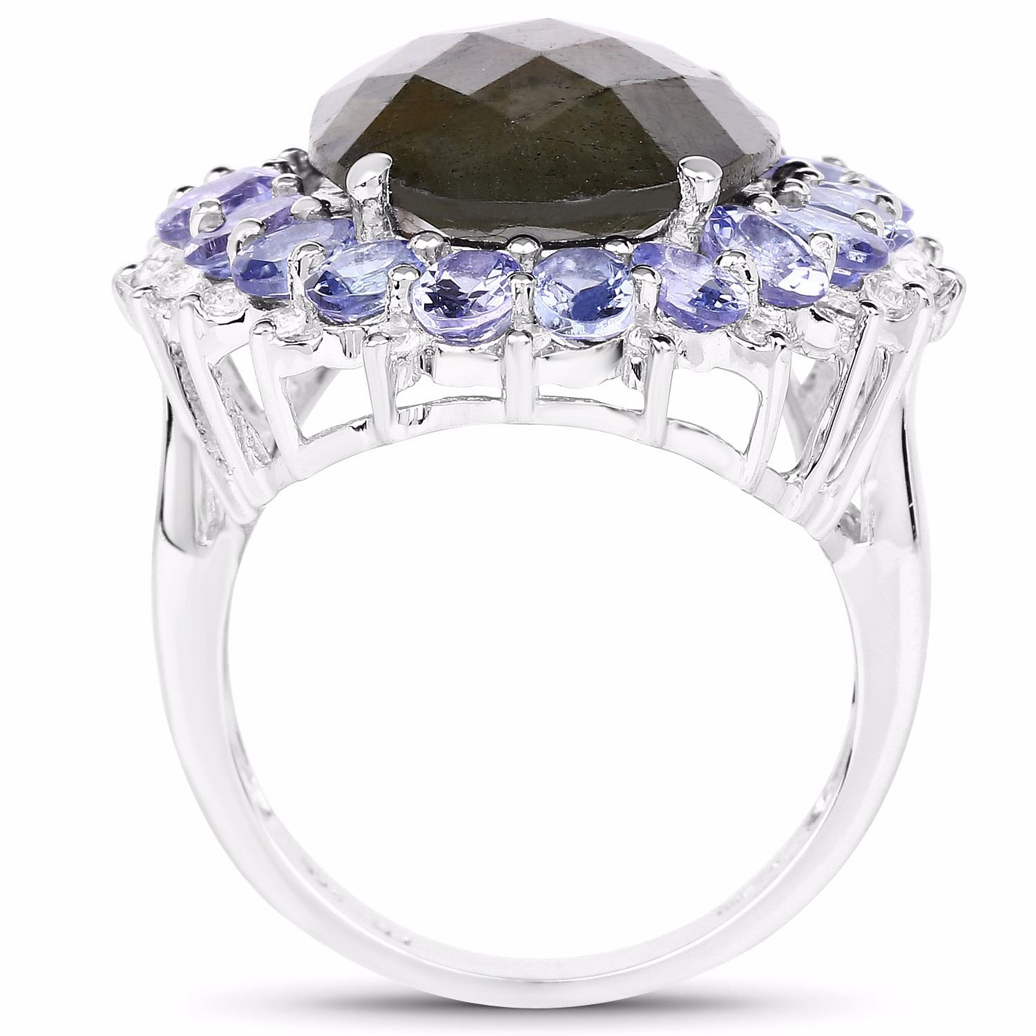 Sterling Silver Checkerboard Laboradorite and Tanzanite Ring