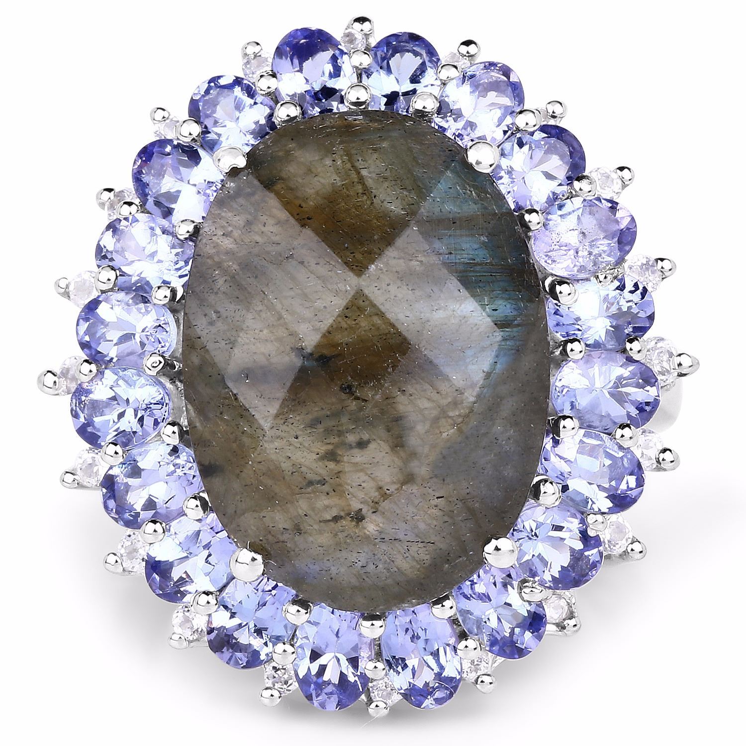 Labradorite Checker Board Oval 18x13mm - 1Pc + Tanzanite ( A-A+ ) Oval 4x3mm - 20Pcs + White Topaz Round 1.70mm - 2Pcs + White Topaz Round 1.50mm - 4Pcs + White Topaz Round 1.40mm - 4Pcs + White Topaz Round 1.30mm - 4Pcs + White Topaz Round 1.10mm - 6Pcs