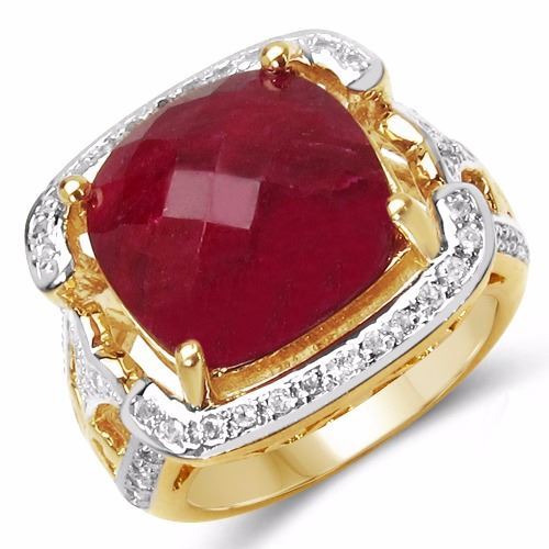 Ruby Flat Bottom Checker Board Cushion 13.00mm - 1Pc + White Topaz Round 1.00mm - 52Pcs ( Center Stone Height : 4.00mm ) ( White Pan Rhodium )